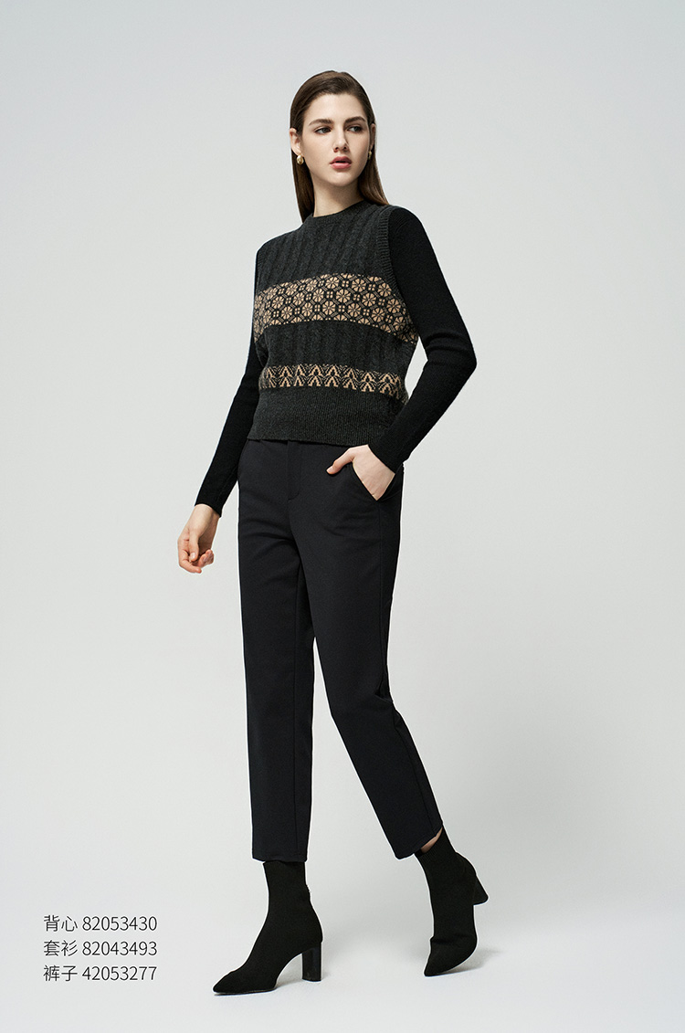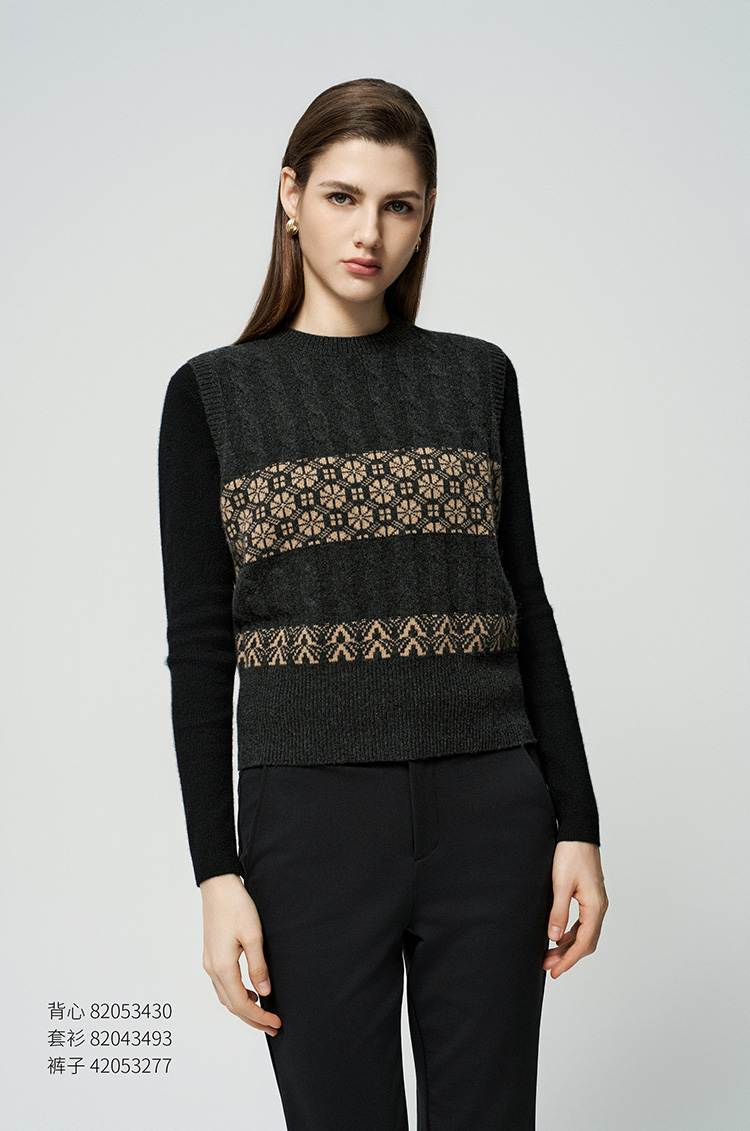 【无袖绞花马甲】羊绒世家秋冬新品女士100%山羊绒条纹撞色针织马甲