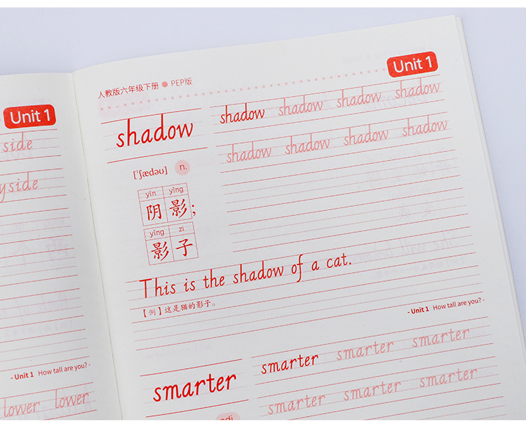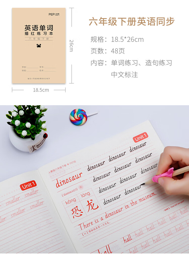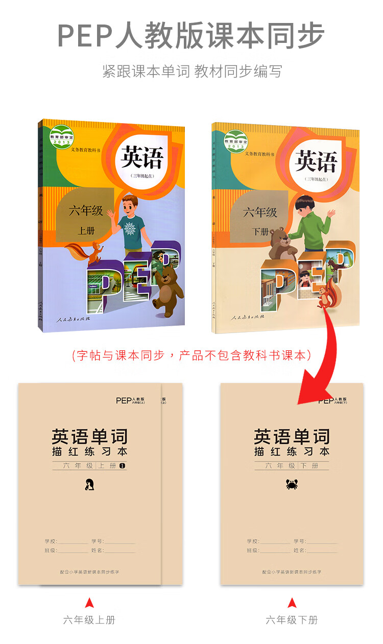 产品清单:《英语单词描红练习本 六年级上册①》*1+《英语单词描红练习本 六年级上册②》*1+《英语单词描红练习本 六年级下册》*1;