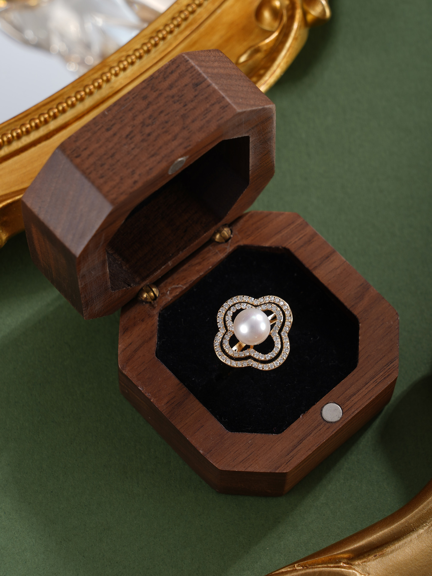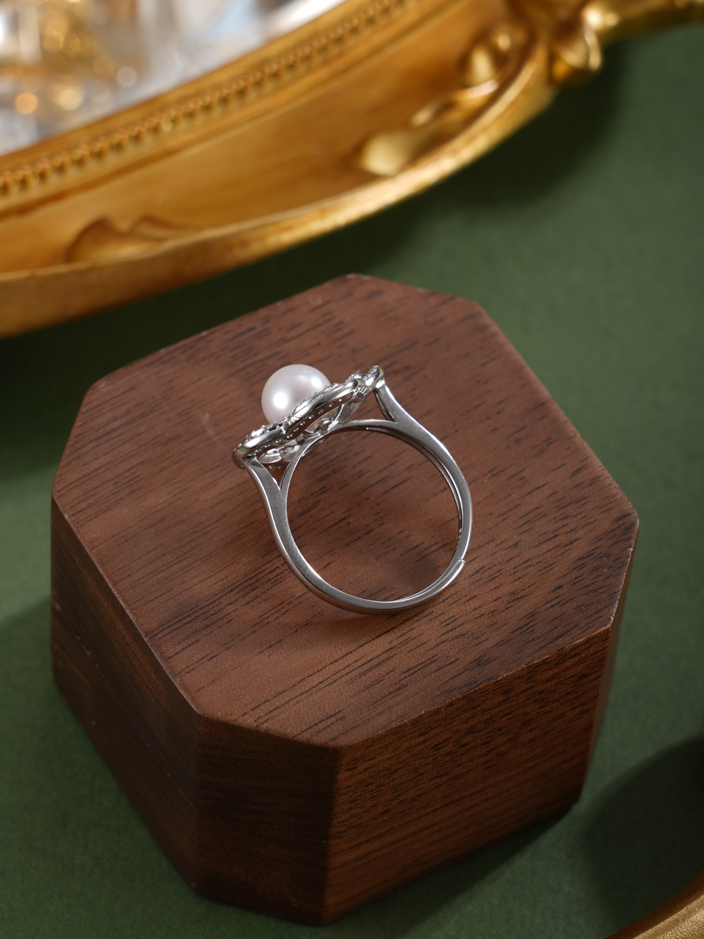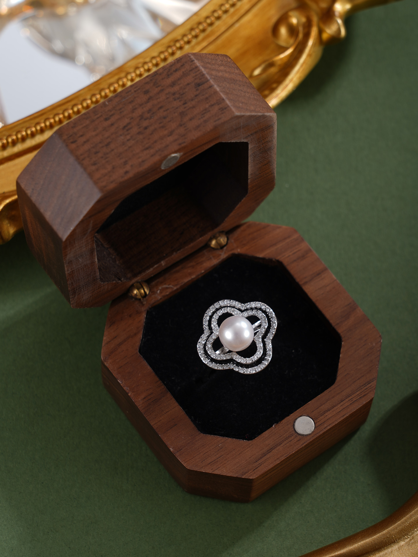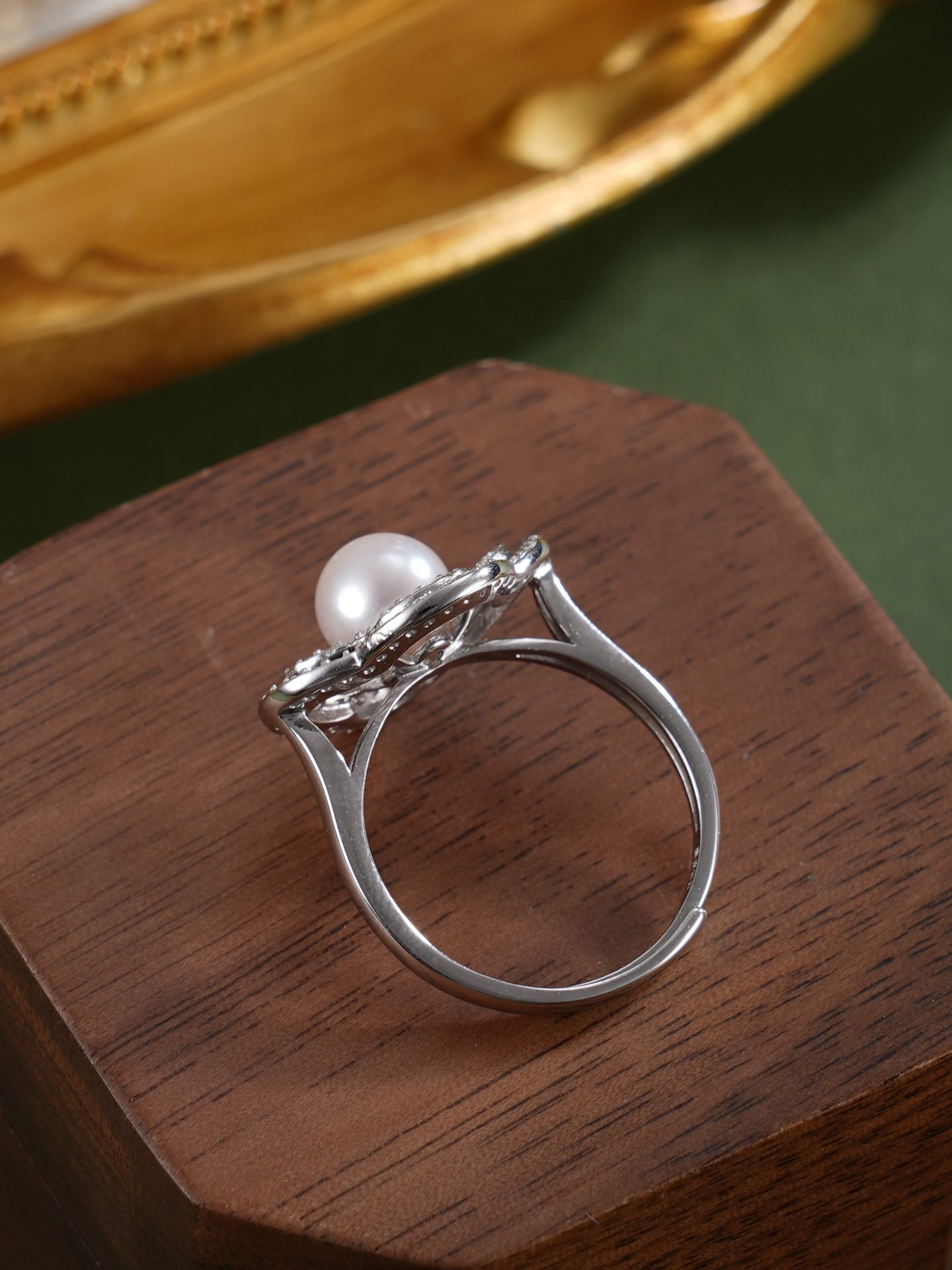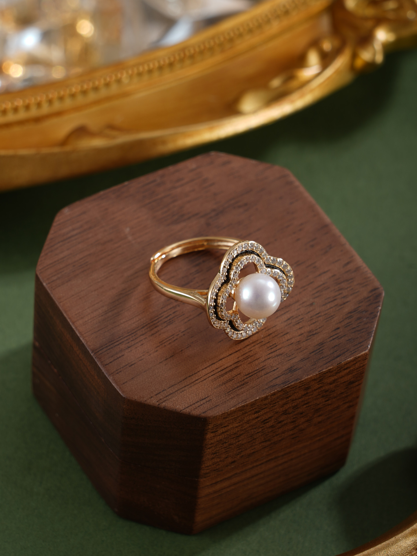子佩集【相思四叶】银S925珍珠惜王妃戒指【YR0090】7mm珠双色四叶草四瓣花2601