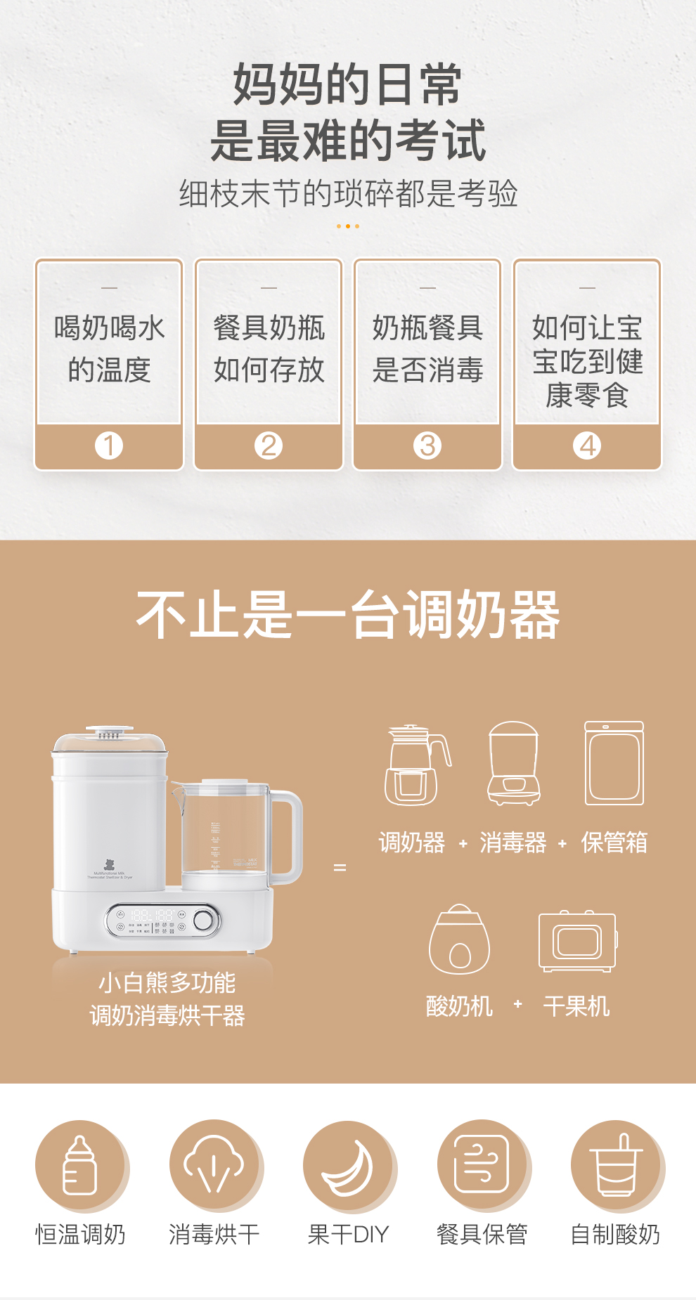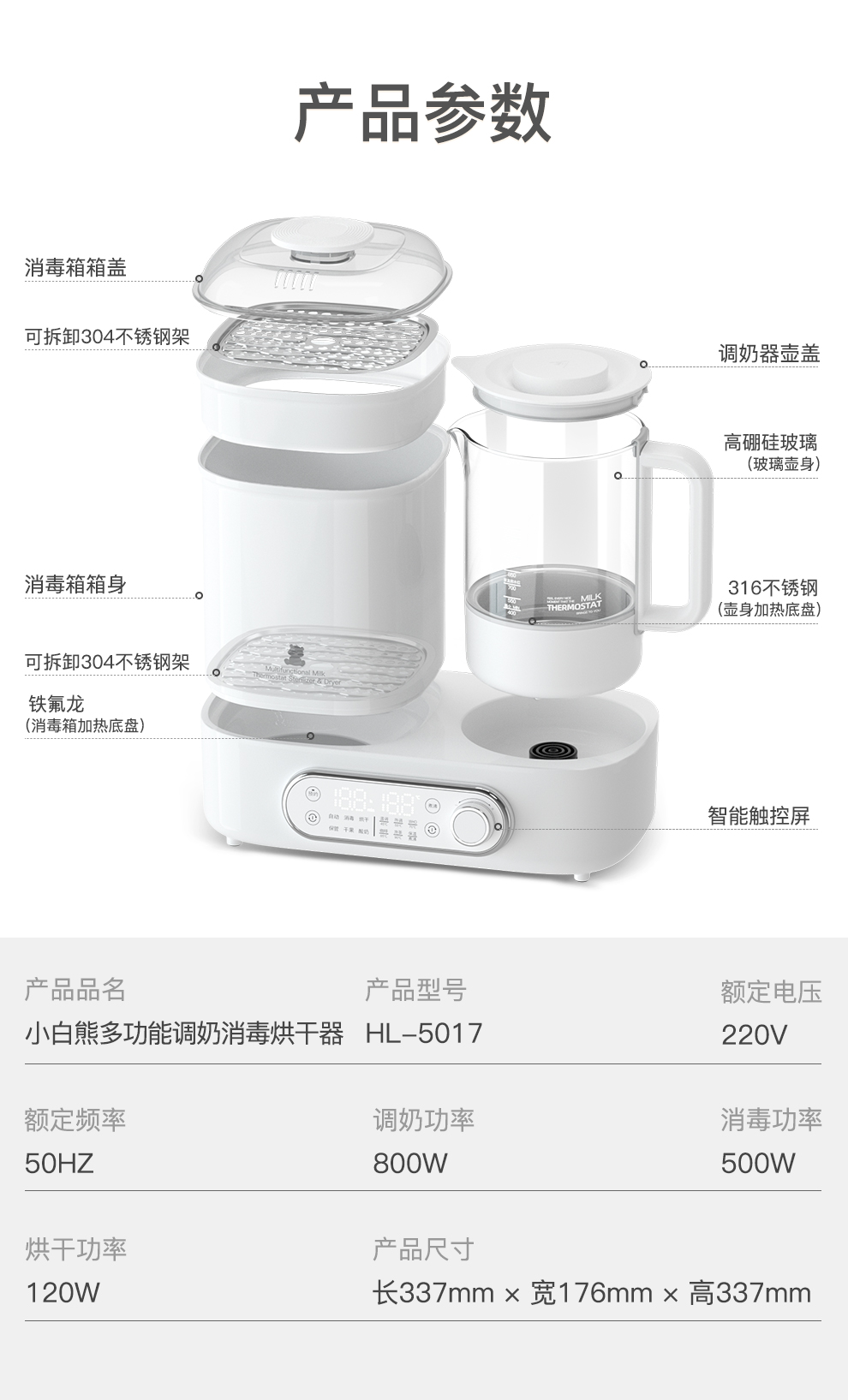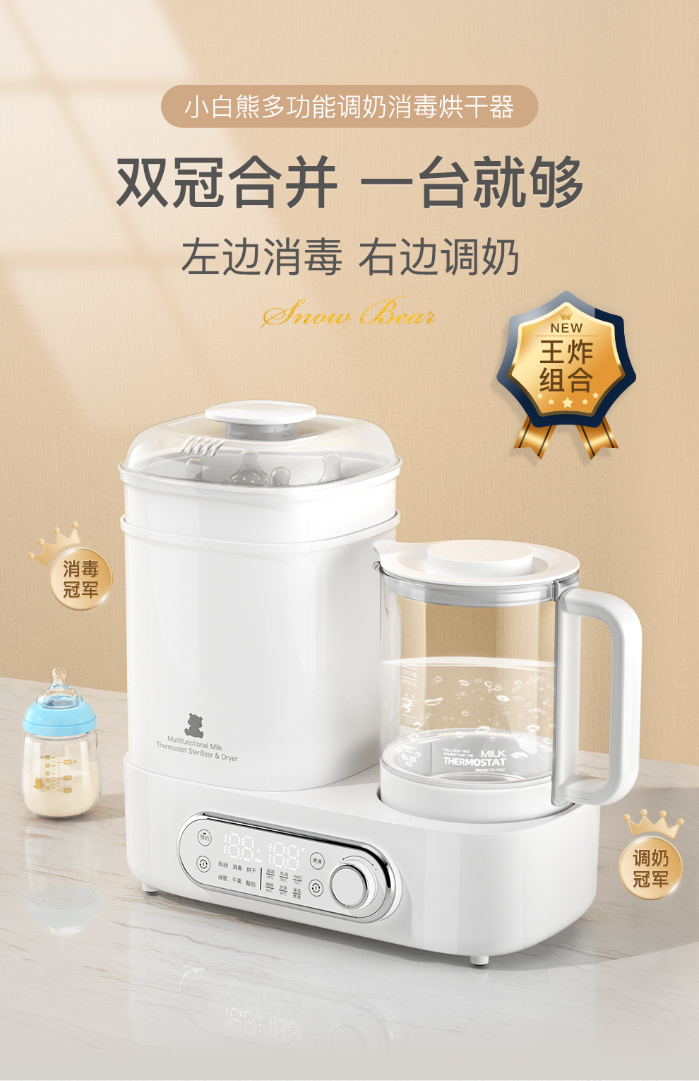 小白熊奶瓶消毒器调奶器一体机带烘干三合一恒温热奶水壶HL-5017