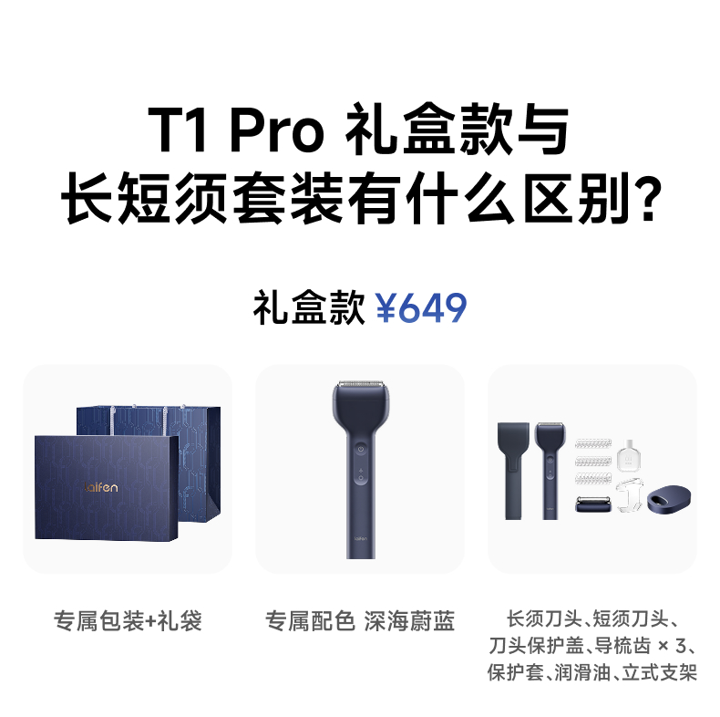 Laifen徕芬剃须刀 T1 Pro 深海蔚蓝【限定礼盒】往复式剃须刀便携电动刮胡刀男士礼物