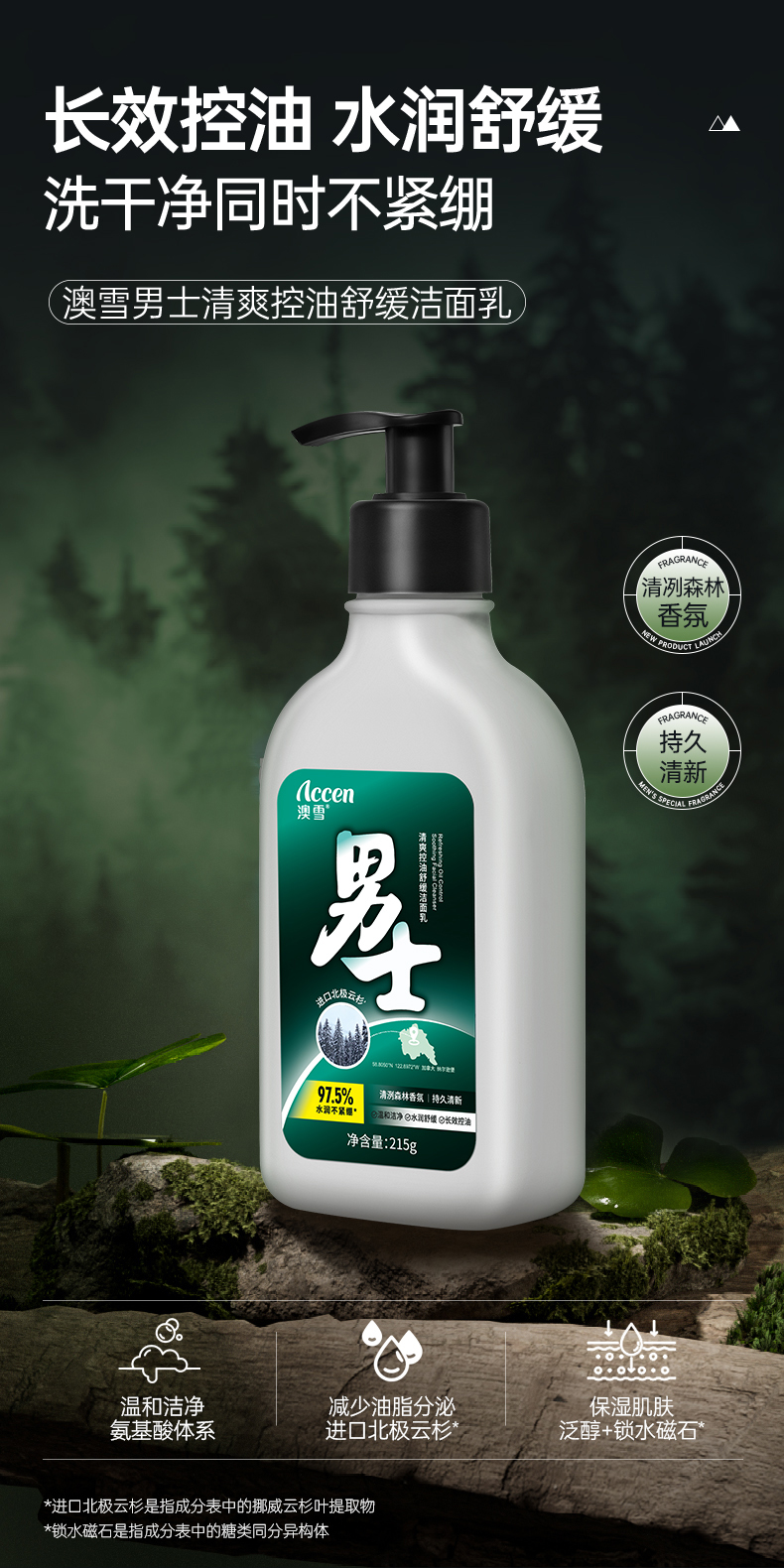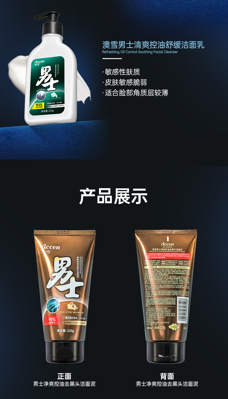 澳雪男士控油洁面乳清爽舒缓215g深层清洁不紧绷