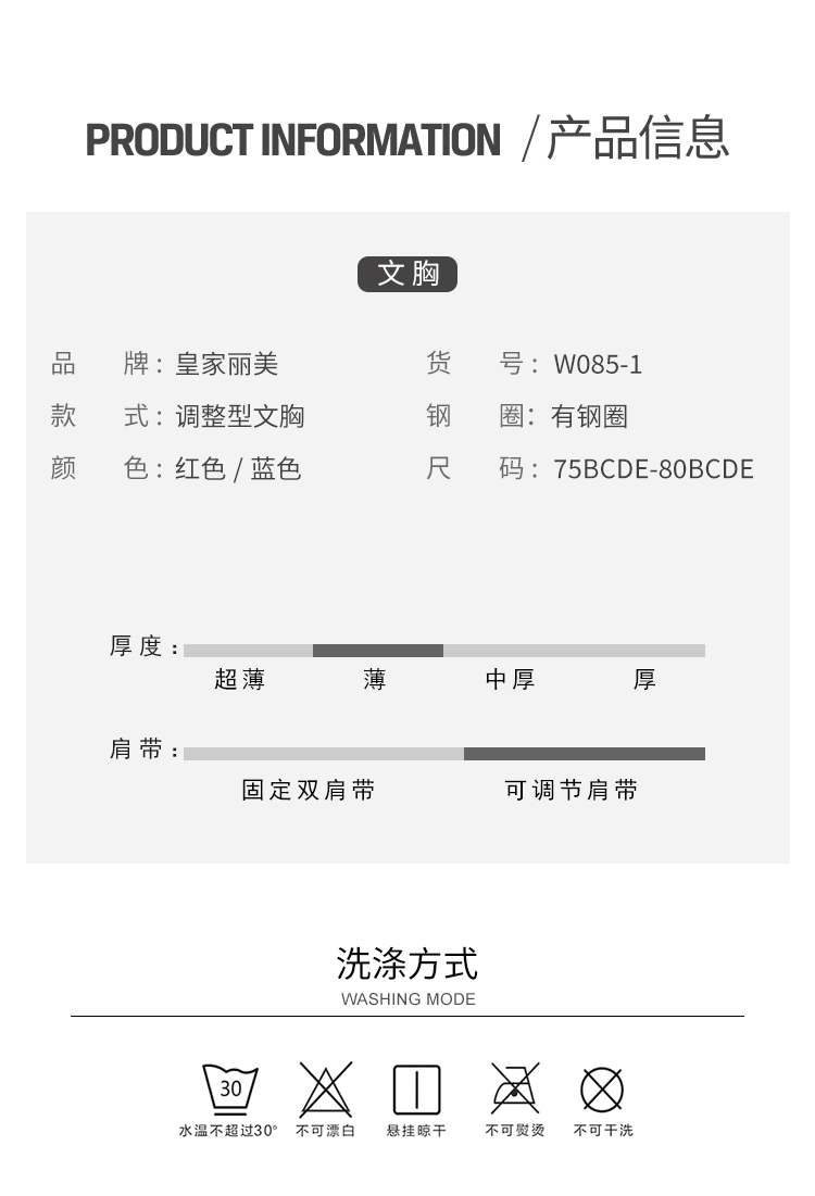 【99元2件,下单拍2!】皇家丽美薄款有钢圈收副乳调整型文胸W085-1