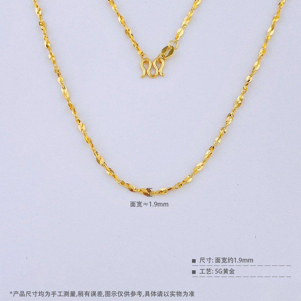 【限时克减150元】足金999 5G黄金实心杨桃链不可调节机织项链(面宽约1.7-2.1mm)(BJ5GXL00030-1)(预售产品下单后不退款不退货不换货不补差价)