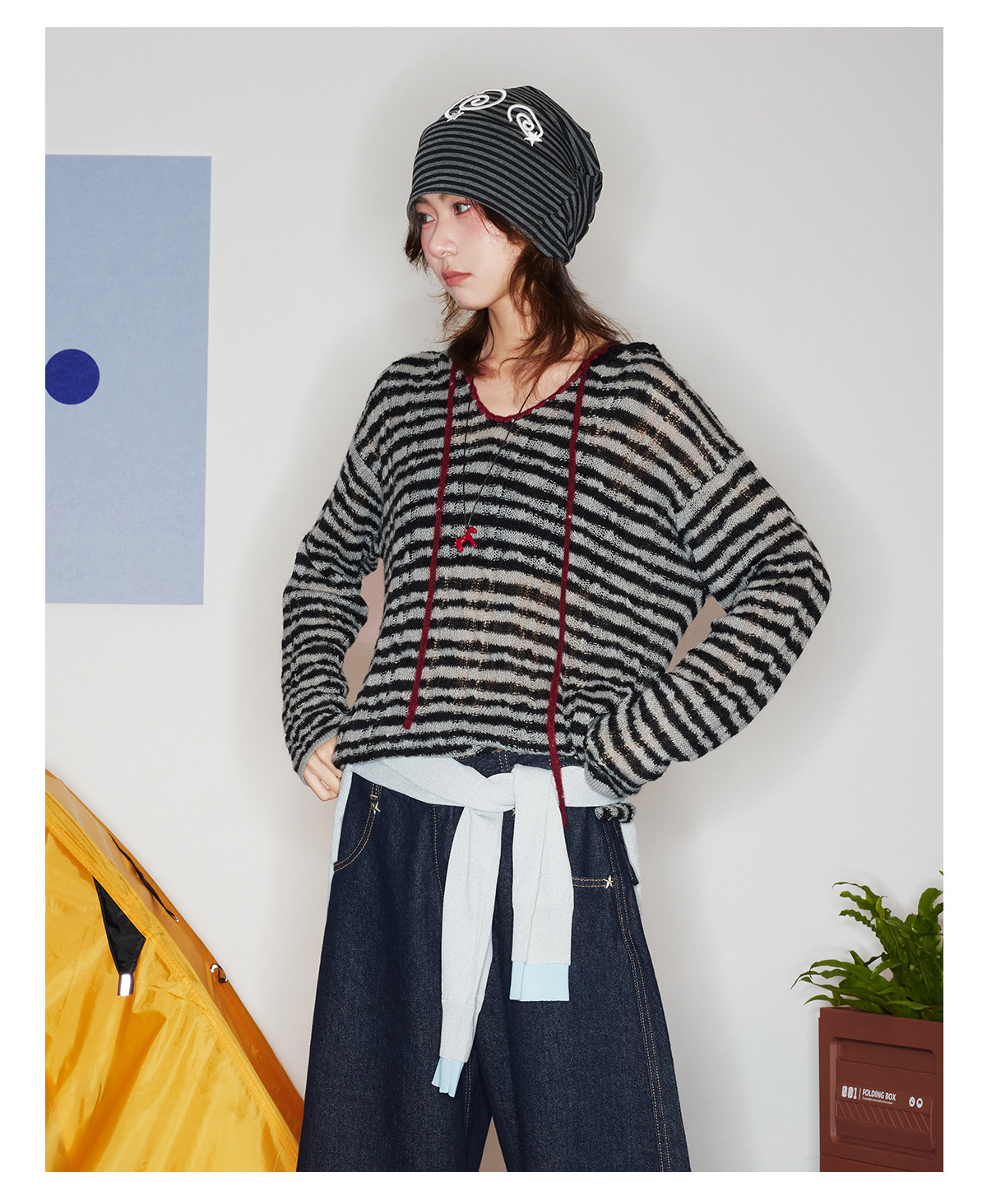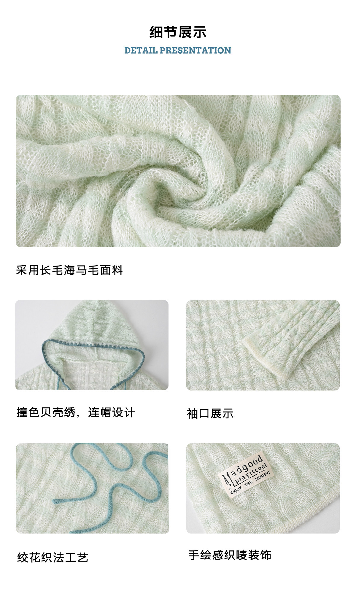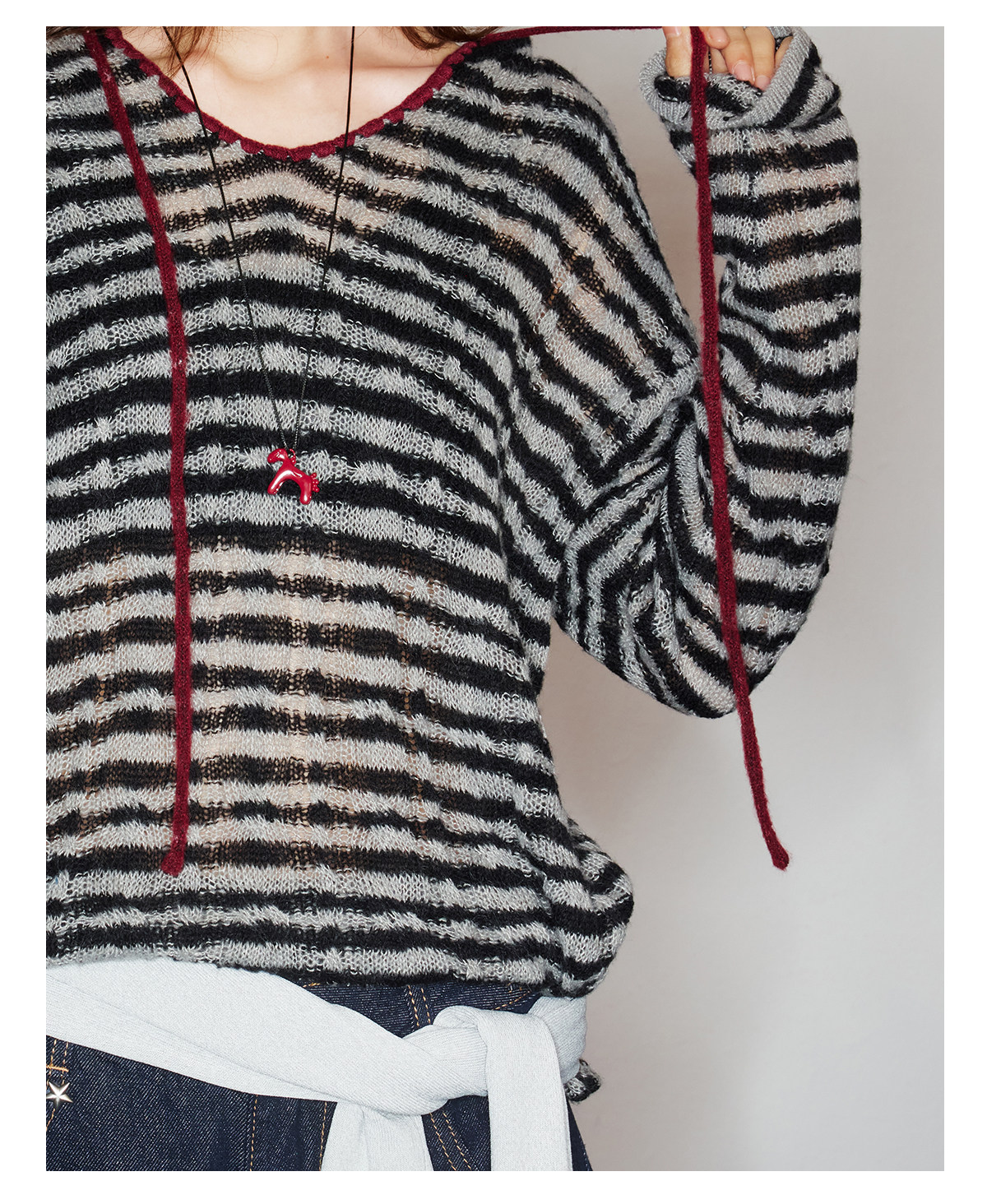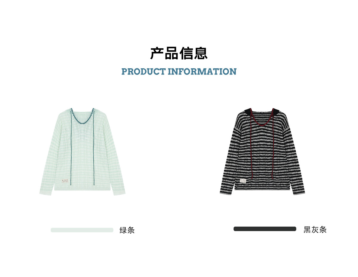 马得工地/MDGDMY211821/ 马海毛贝壳绣条纹连帽罩衫