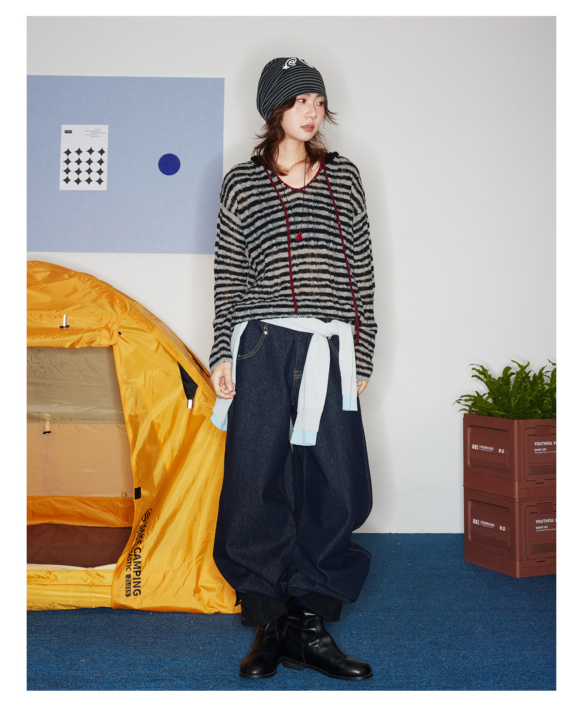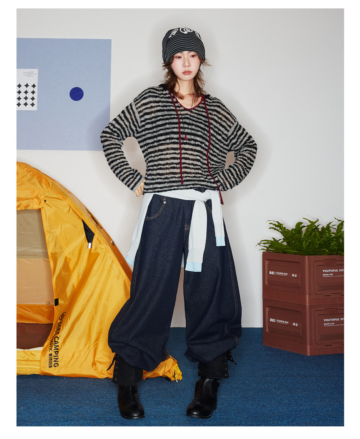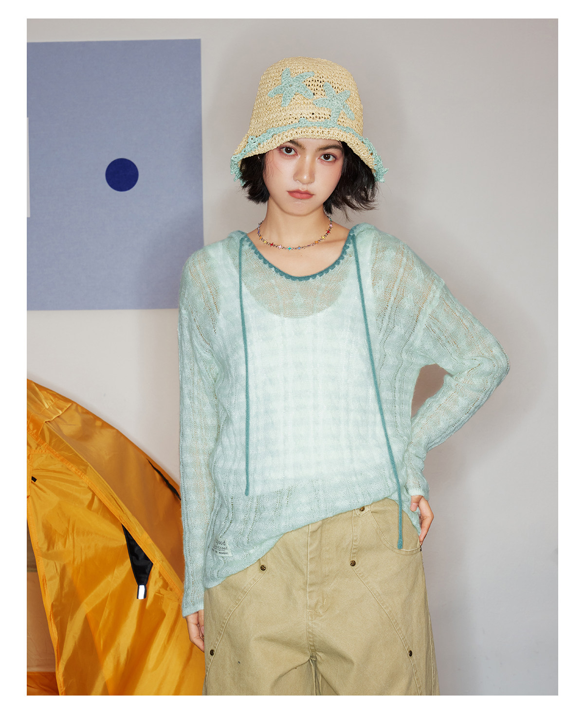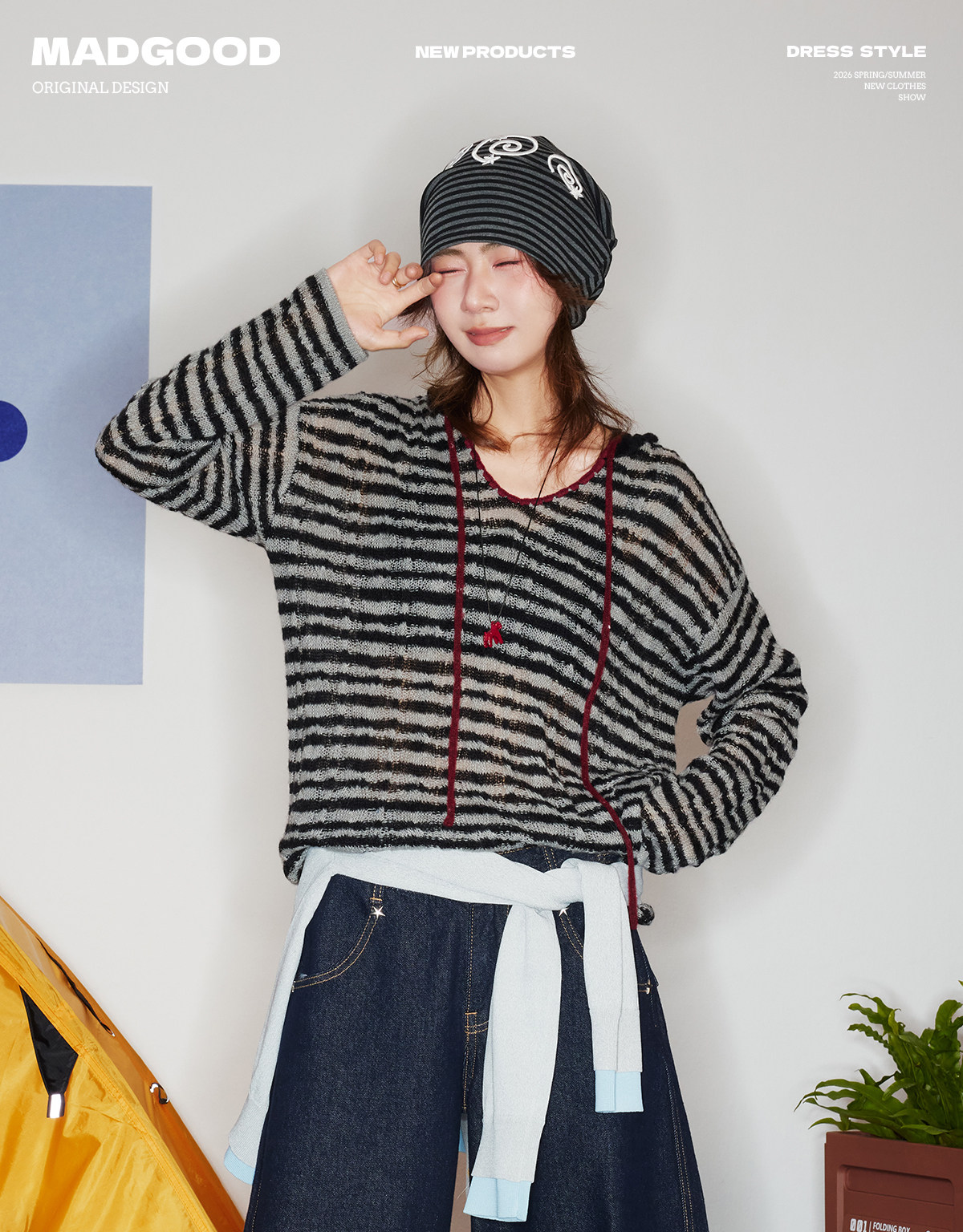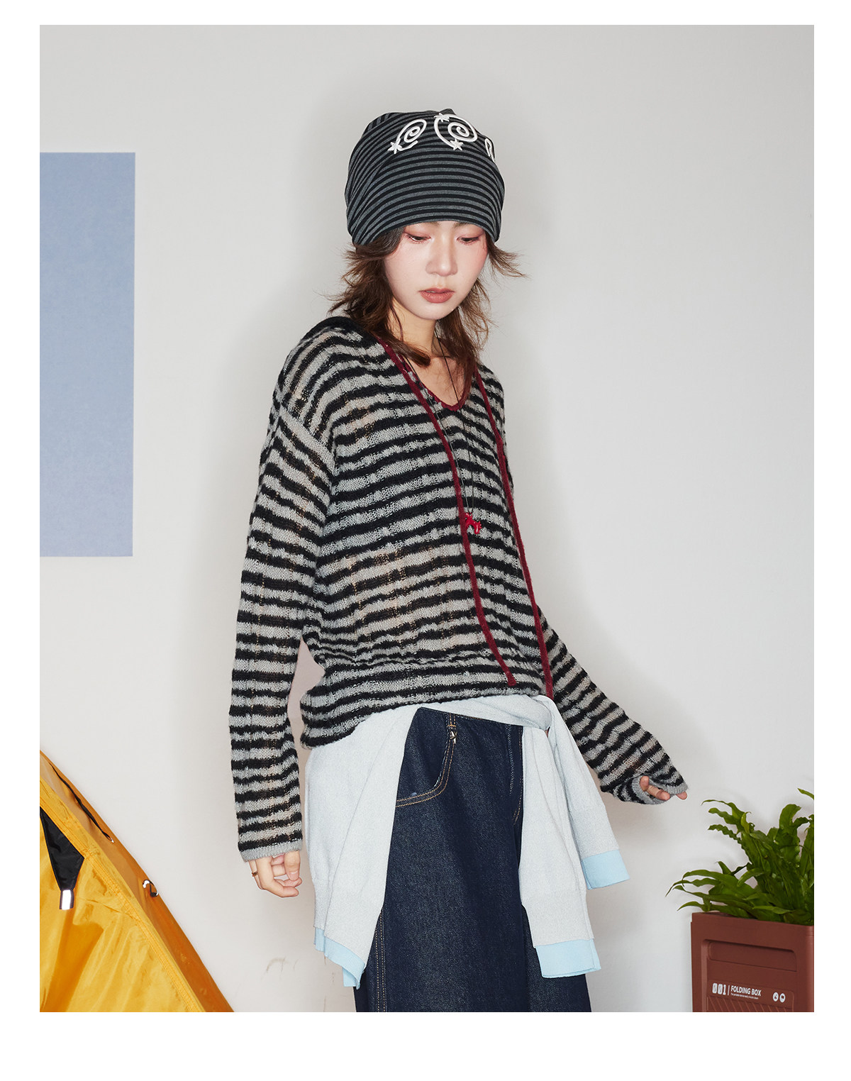 马得工地/MDGDMY211821/ 马海毛贝壳绣条纹连帽罩衫