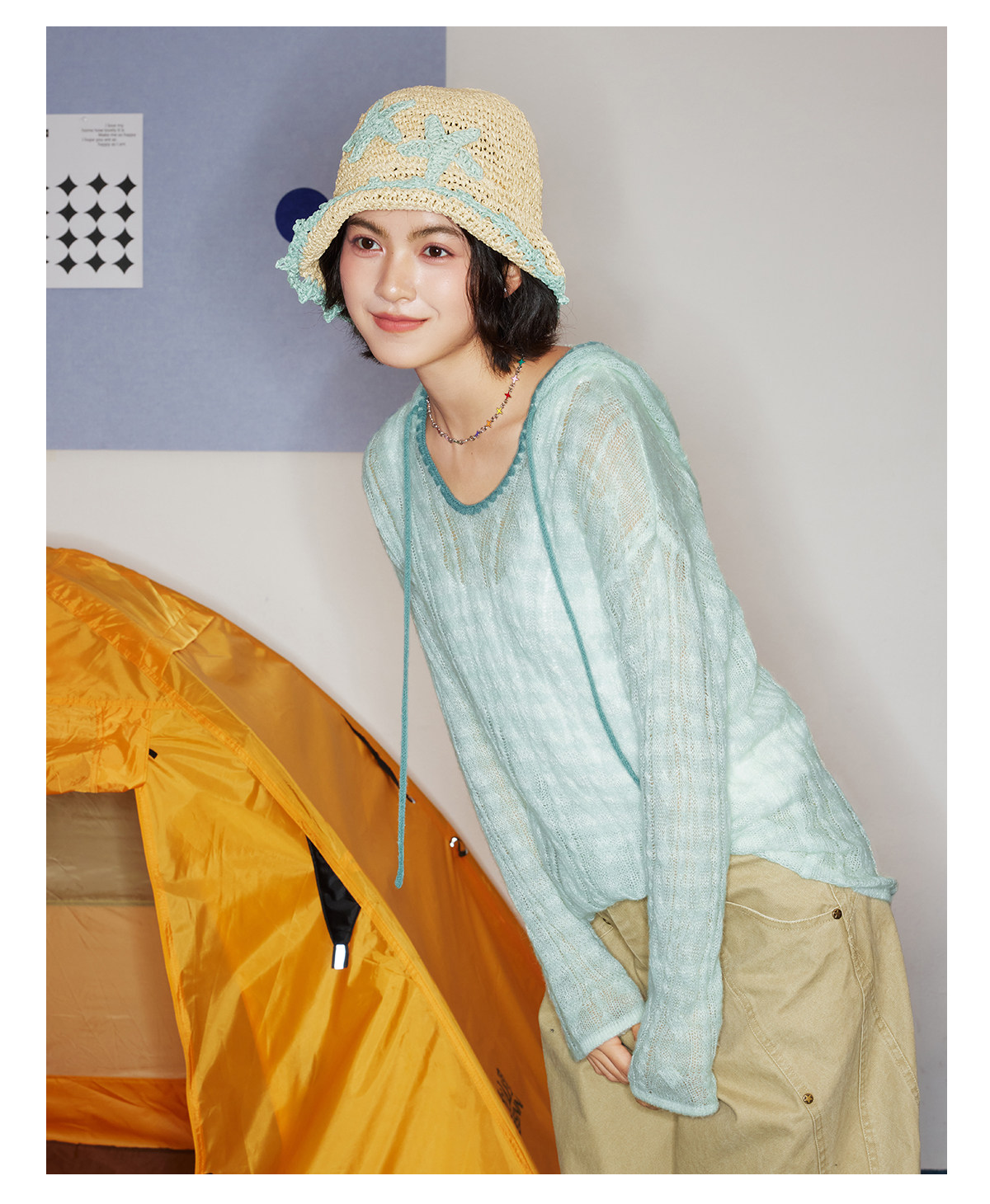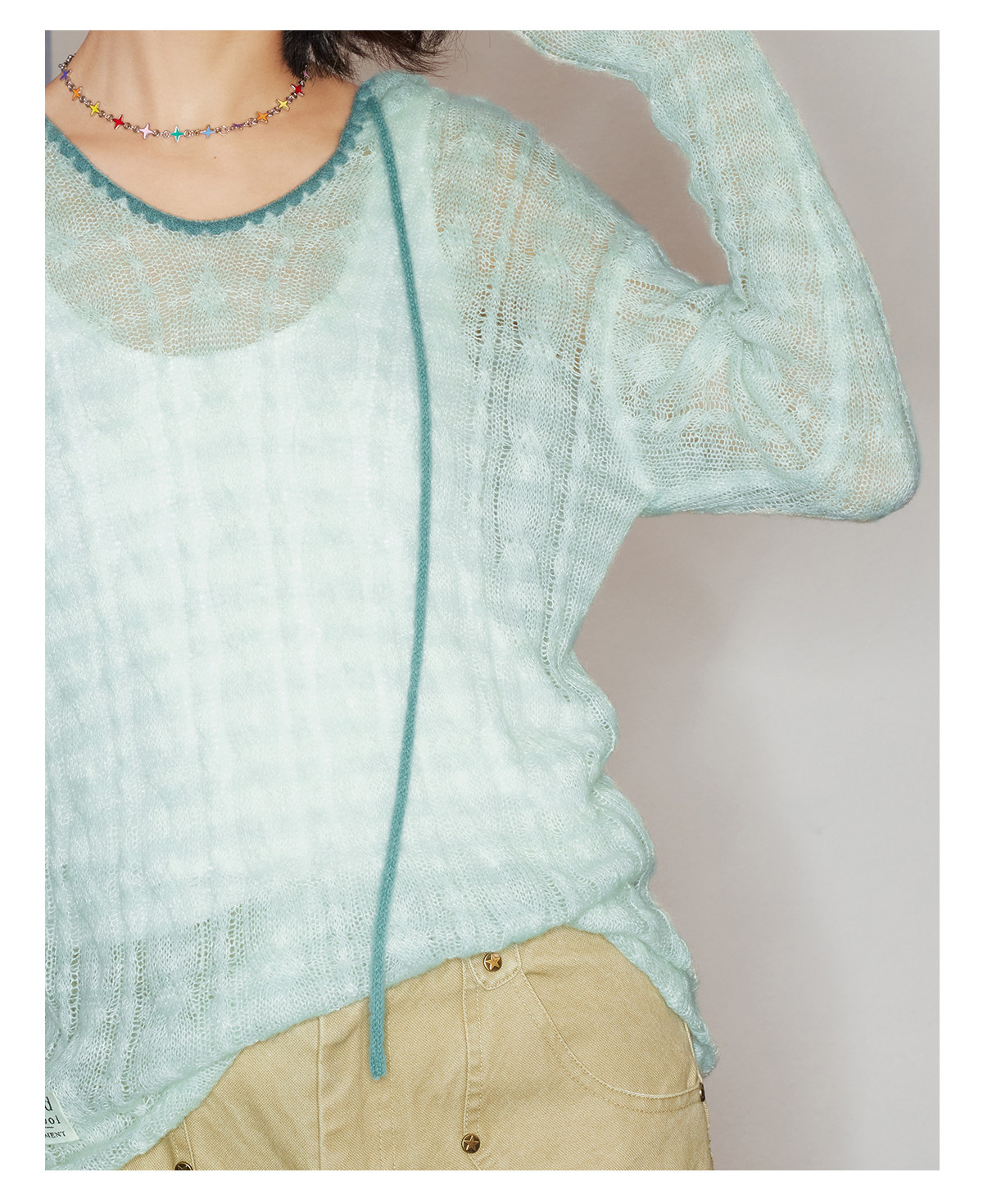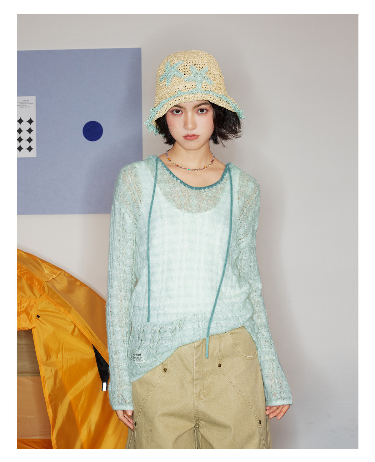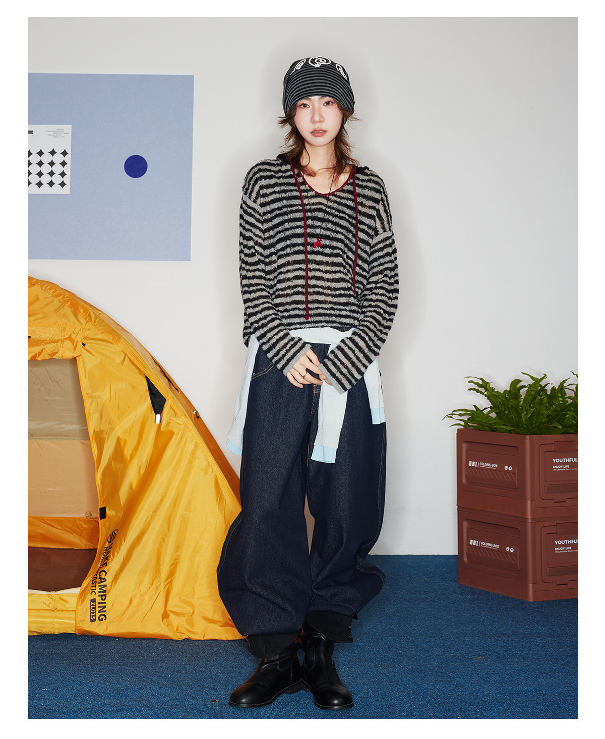 马得工地/MDGDMY211821/ 马海毛贝壳绣条纹连帽罩衫