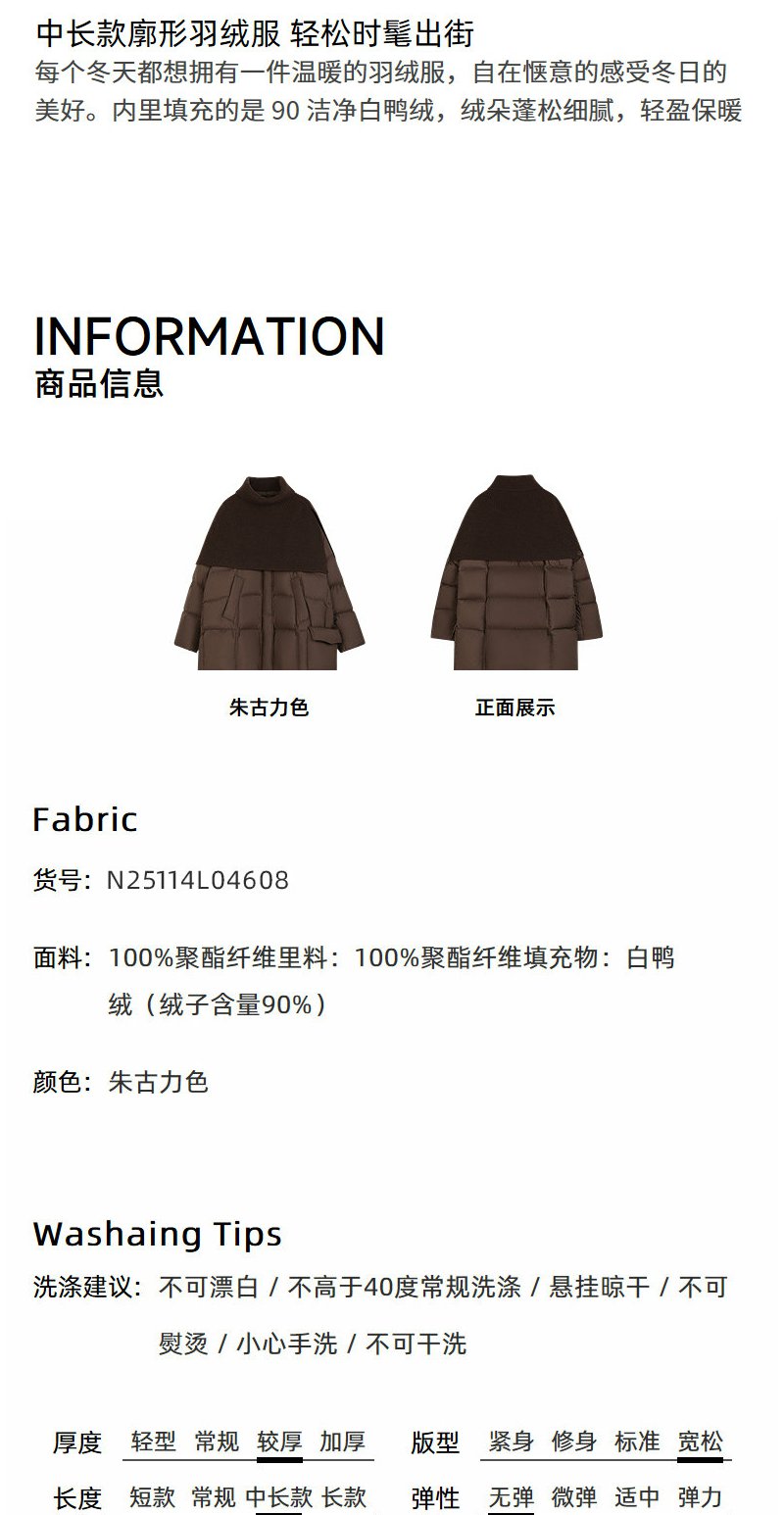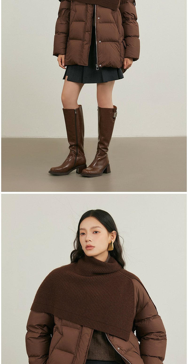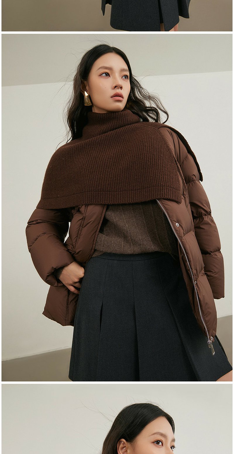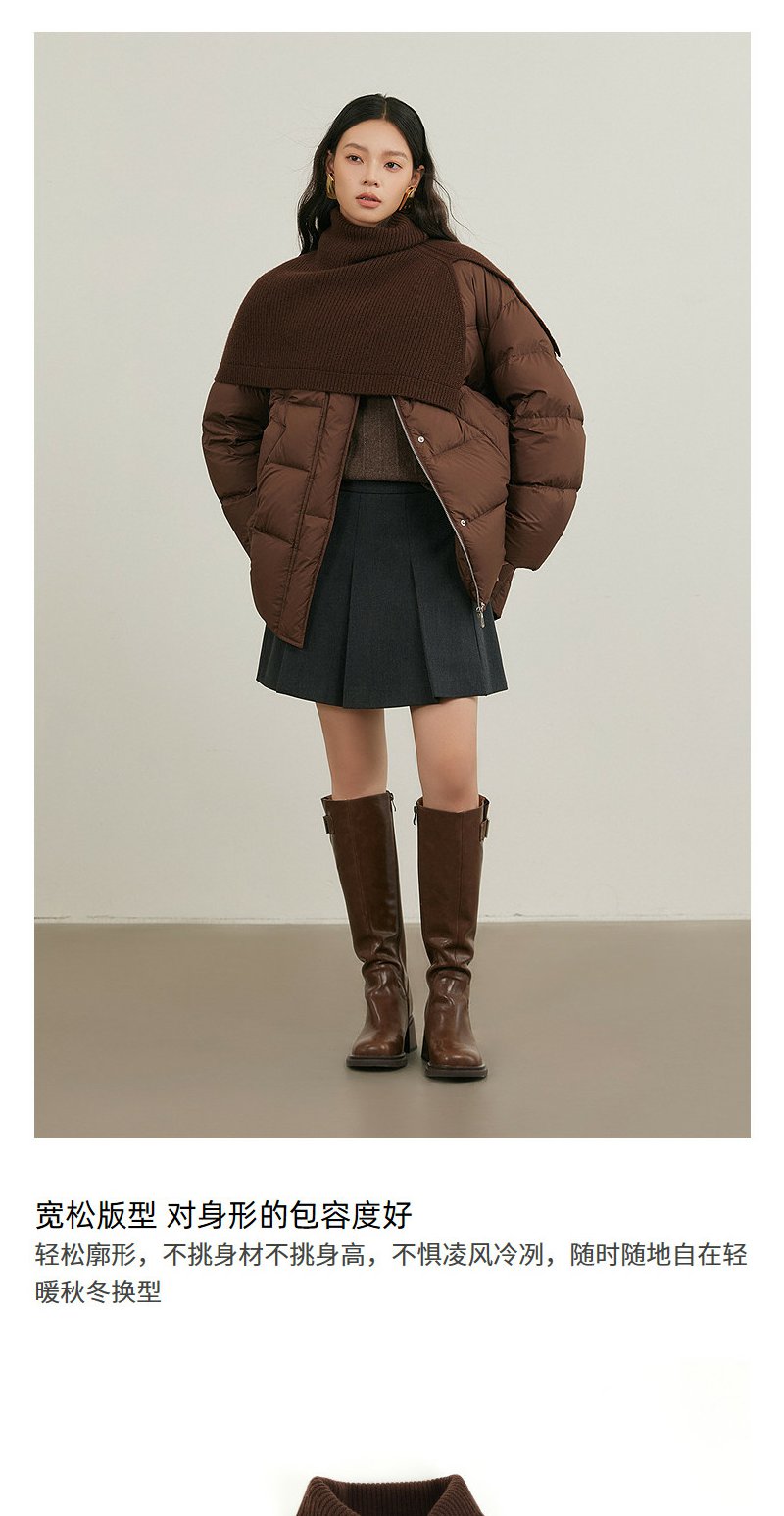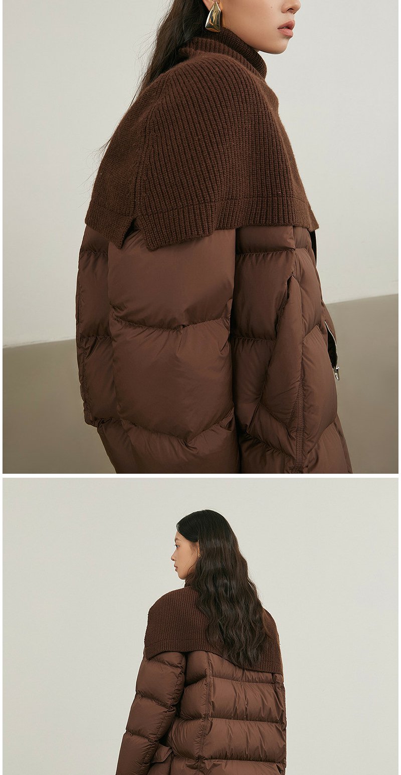 NEELLY纳俪商场同款冬季新款复古针织披肩保暖外套女白鸭绒羽绒服N25114L04608