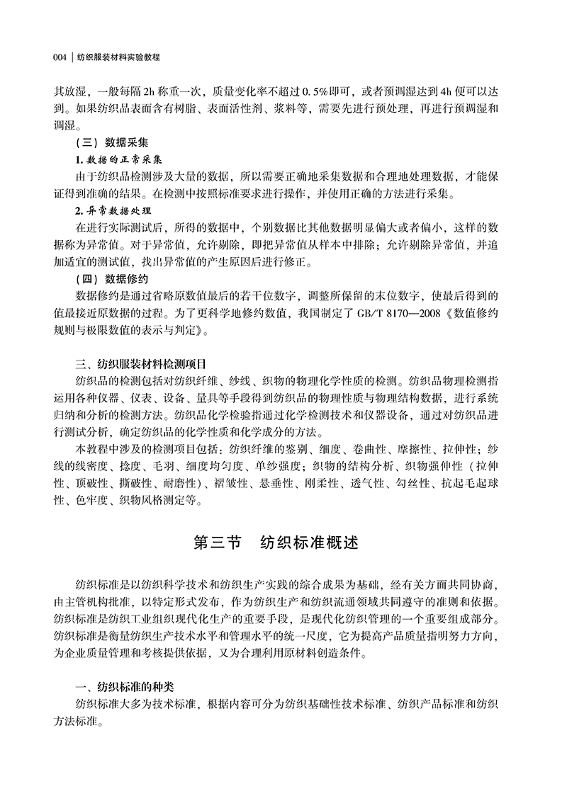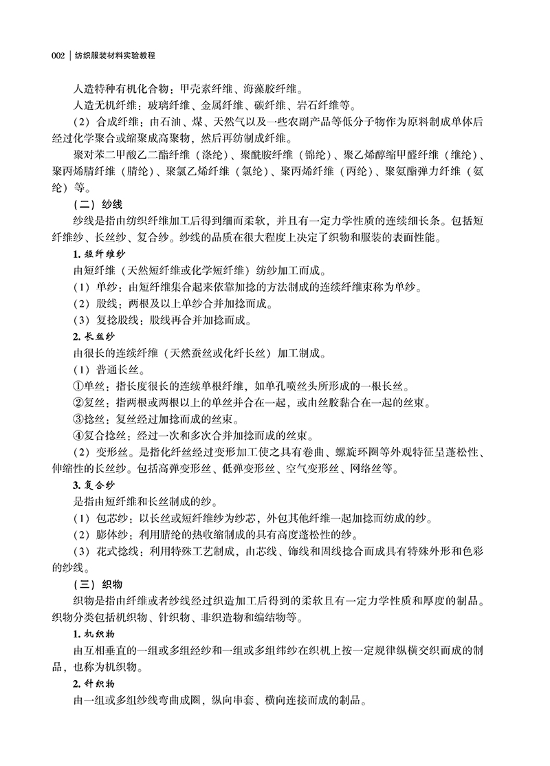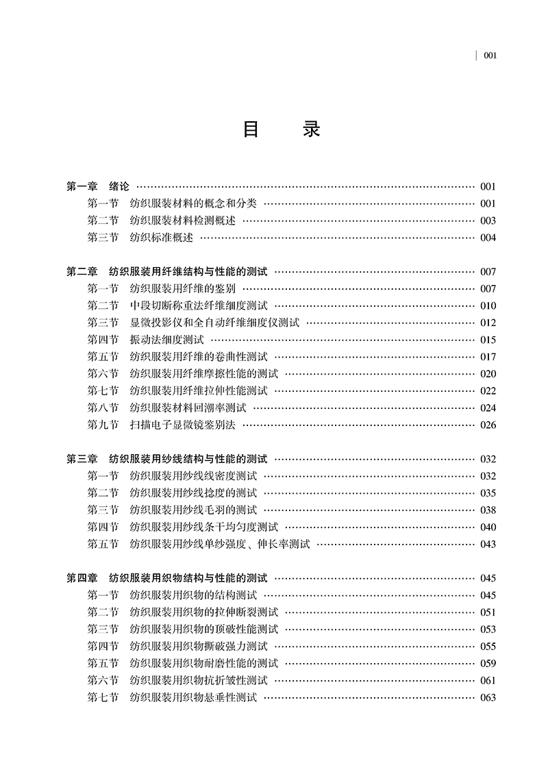 《纺织服装材料实验教程》是培养纺织、服装设计与、服装与服饰设计等专业的实验教学课程教程之一,是与纺织材料学、服装材料学理论课程配套的实验教程。根据不同专业的人才培养目标及企事业单位对专业人才的要求,教程介绍了纺织、服装材料检测的基础知识以及纤维、纱线、织物三种形式的结构、性能特点和检测方法。