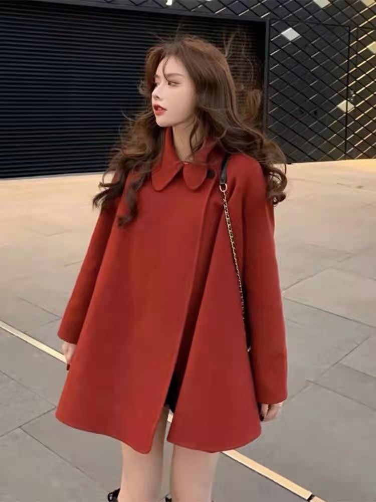 斗篷08189年轻时尚小香风双面羊绒女短款A字款新款双面呢,上身显瘦效果很好,不显肚子,穿出女人的优雅气质,颜色红色,黑色,均码号从100-140斤穿着