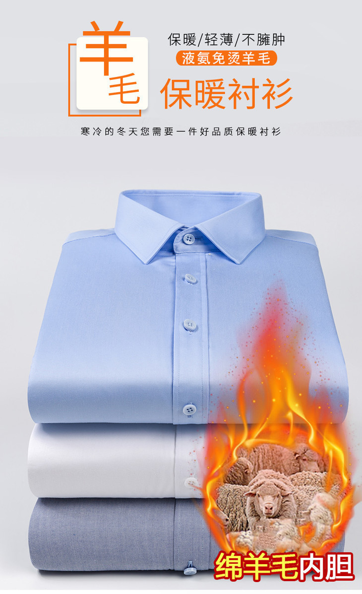 【羊毛内胆液氨免烫保暖衬衫】加厚通勤衬衣休闲长袖打底衫