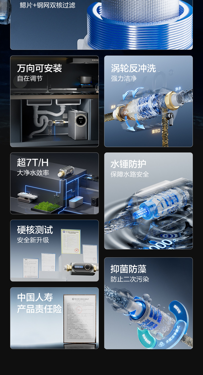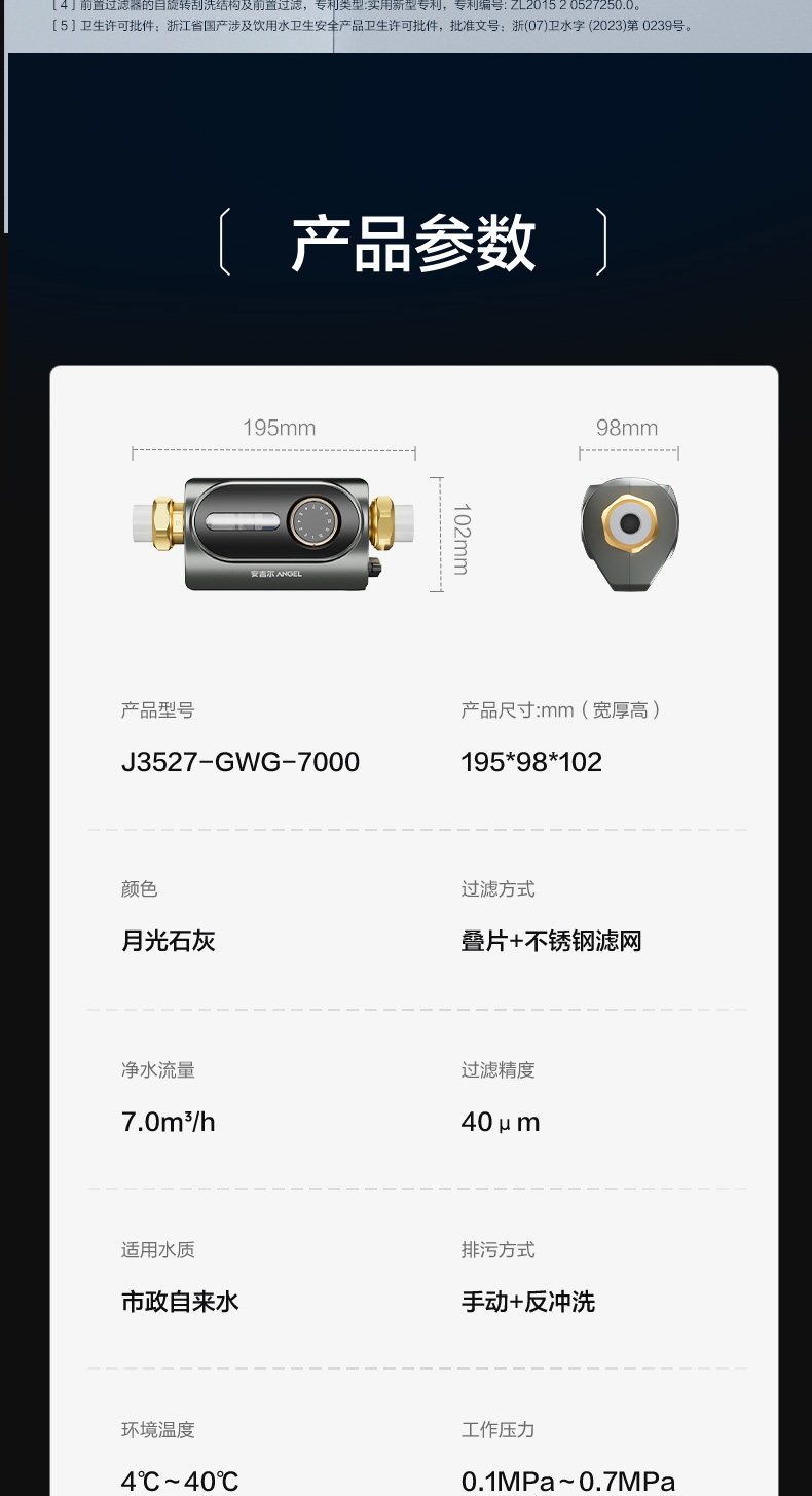 安吉尔前置过滤器7T J3527万向安装实时自动清洗反冲洗 40微米