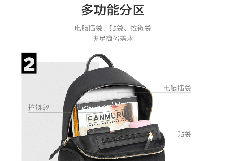 新秀丽精致典雅女士电脑双肩包,水松底尼龙面料,挺括有型TT8