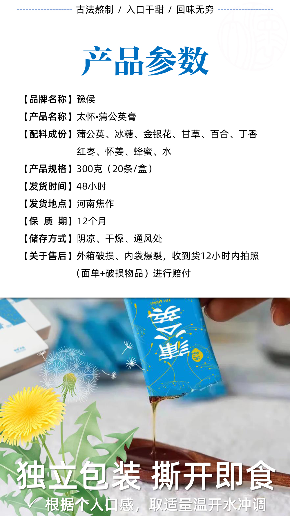 蒲公英膏 古法熬制10中原材中和蒲公英寒凉苦涩 太行山下优质原材 蒲公英膏15g*20条/盒