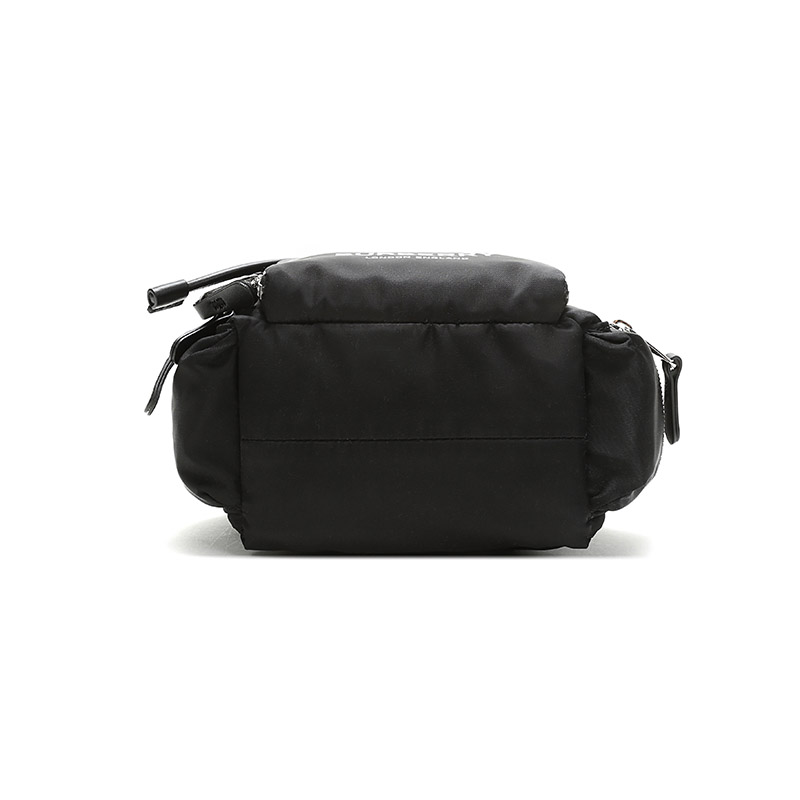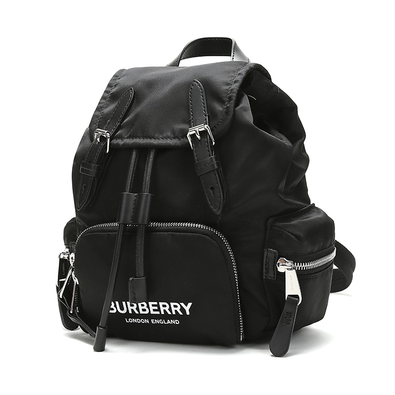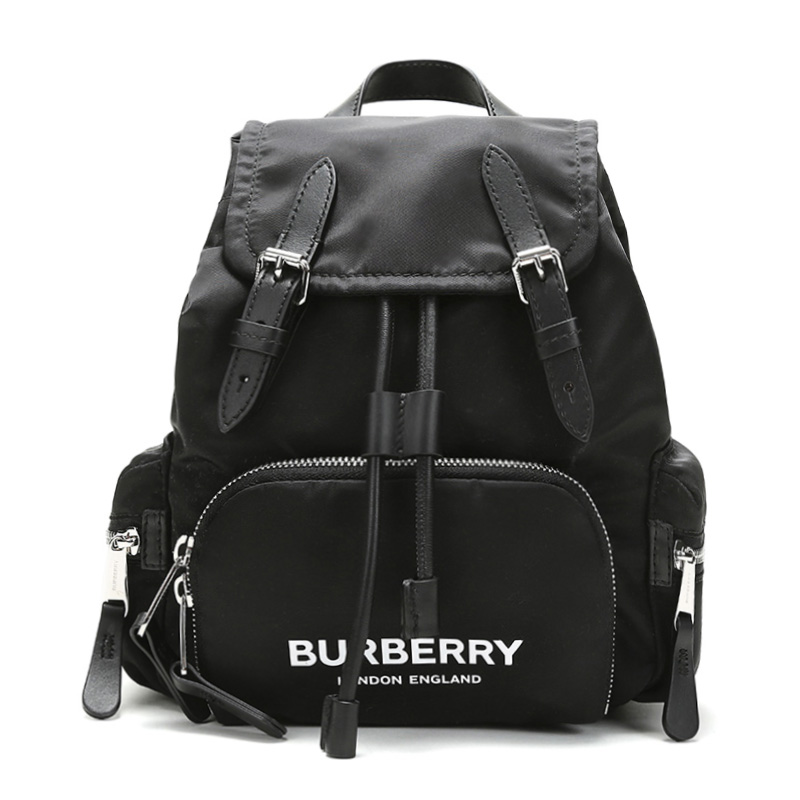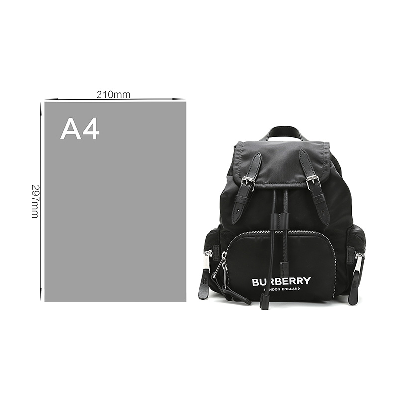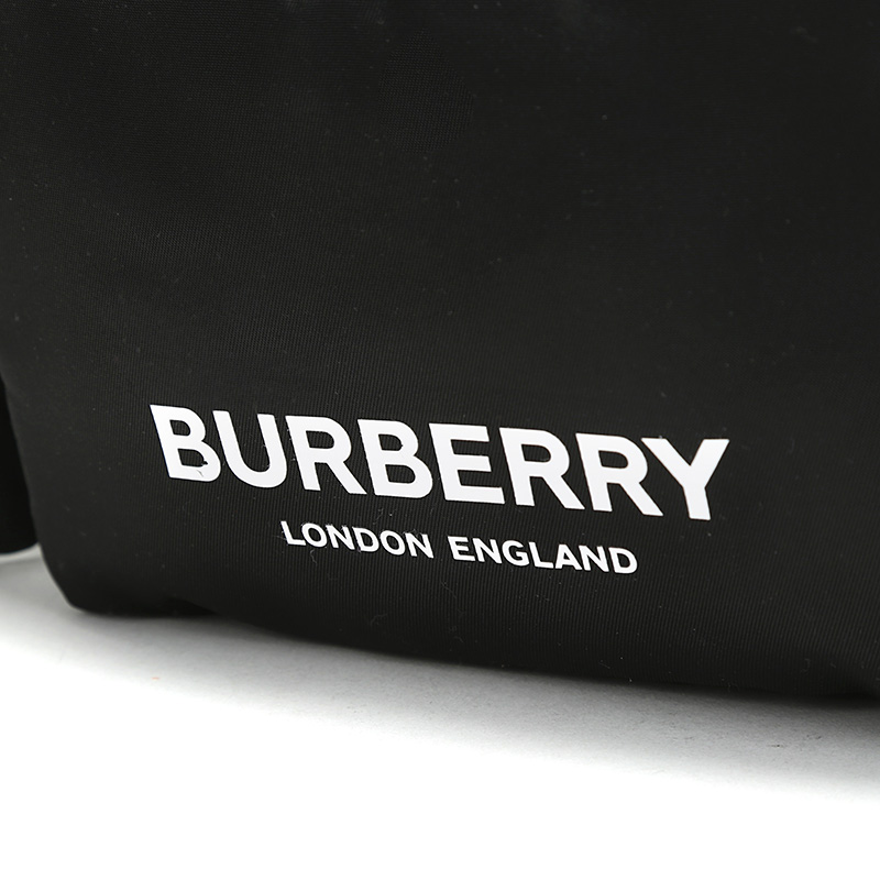 品牌:BURBERRY/博柏利产地:罗马尼亚等国(批次不同,产地不同)款式:女款颜色:黑色徽标印花材质:织物结构:按扣翻盖,抽绳开合,内置1个贴袋,外置3个拉链贴袋尺寸:宽约16cm,高约24cm,厚约12cm