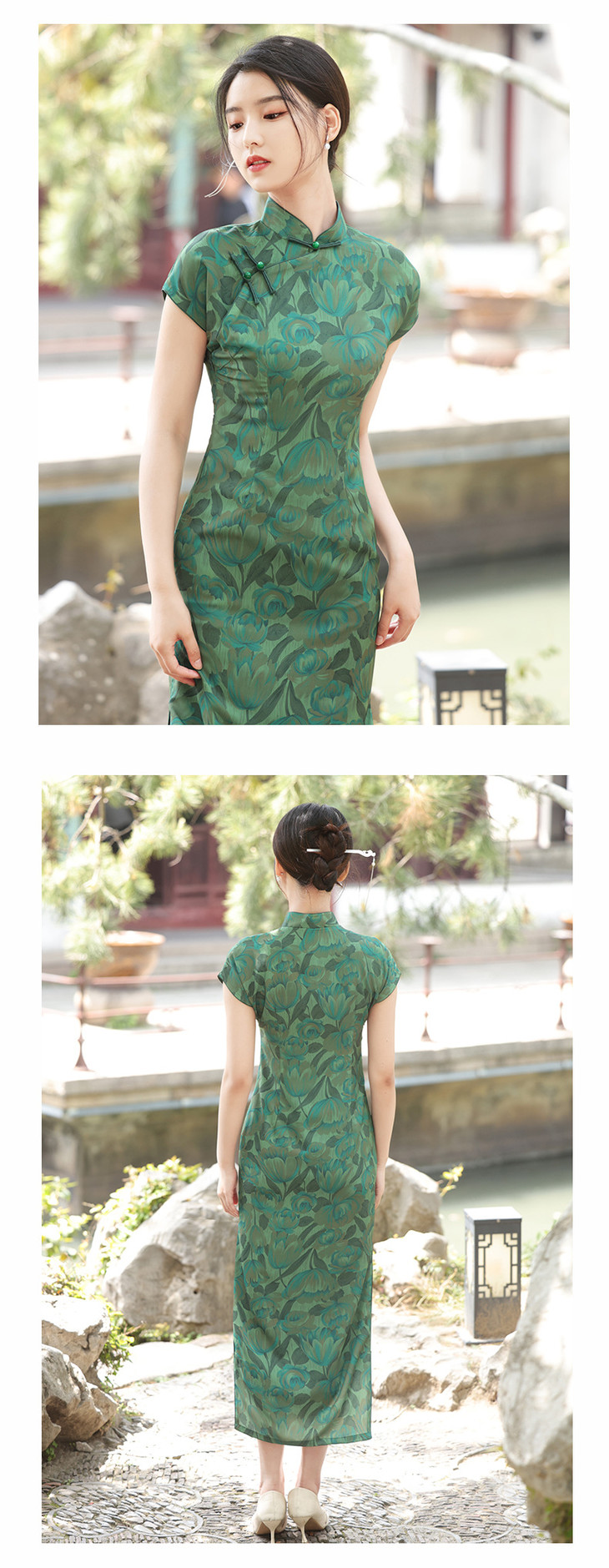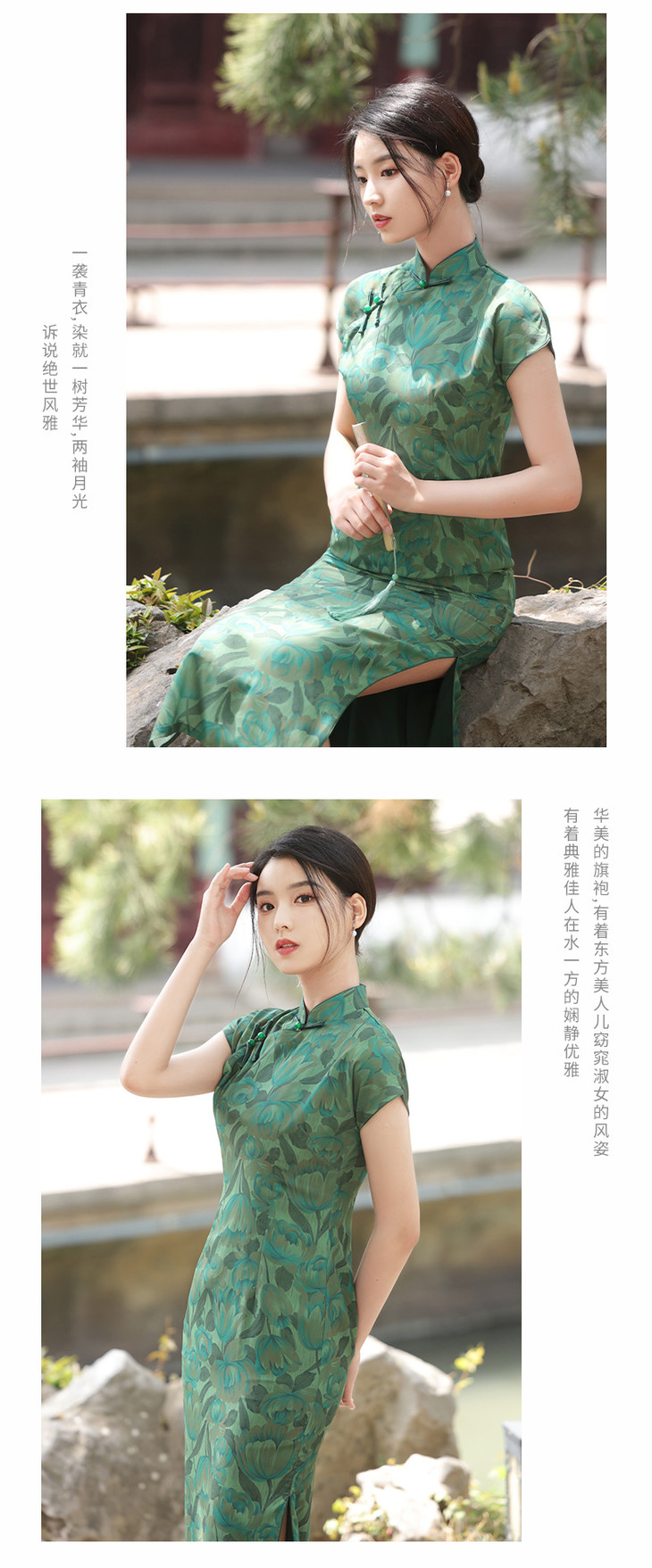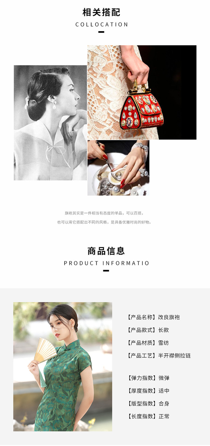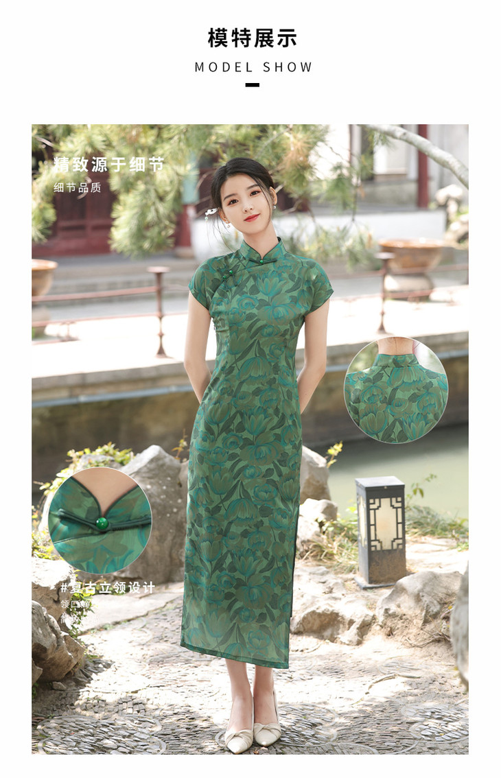 温婉优雅淑女范真开墨绿色旗袍2023年春夏新款改良年轻款YG-2247