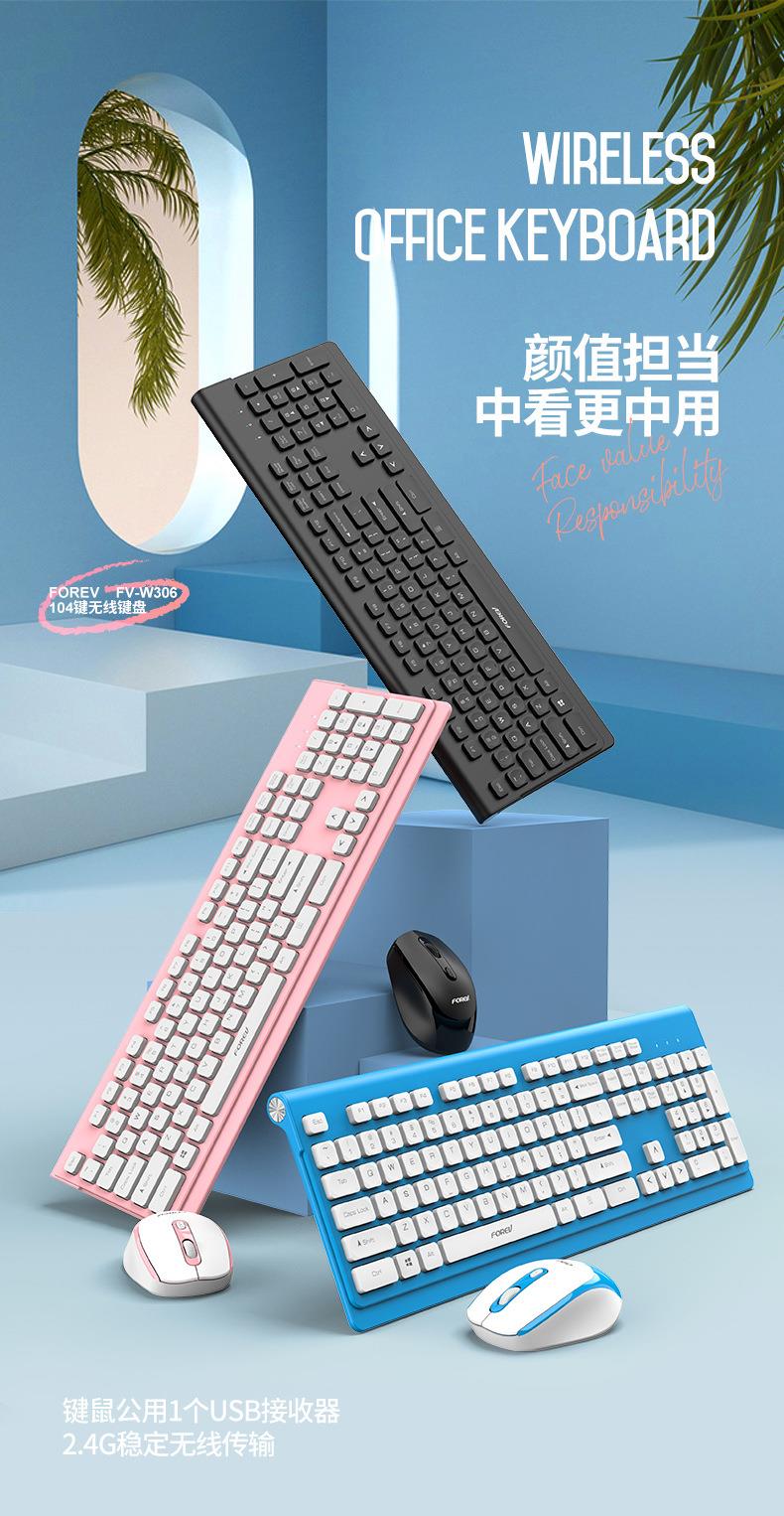 FVW306无线静音键鼠套装人体工学轻薄便携键盘鼠标套装家用办公款