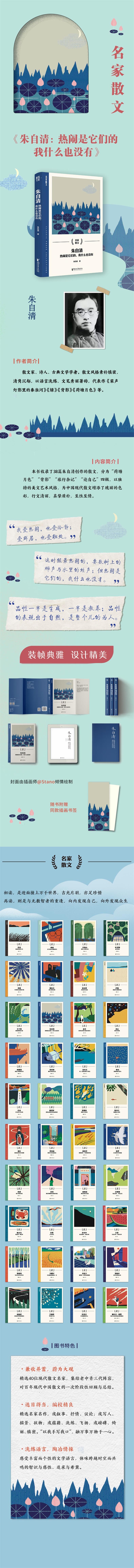 本书是“名家散文”系列之一种,该系列从灿若星辰的中国现代散文家中遴选出一批作者,精选其散文创作中的经典作品,结集成册,以飨读者。本书收录了38篇朱自清创作的散文,大多广为流传,包括历来都被作为白话美文典范收入各类语文教材的一些篇目,例如《春》《背影》《荷塘月色》等。本书共分四辑:以景传情的“荷塘月色”、抒情忆人的“背影”、揽胜记游的“旅行杂记”、指摘时弊的“我们的时代”。朱自清善于把自己的真情实感,通过平易的叙述表达出来,笔致简约,亲切,读来有一种娓娓动人的风采。他的作品风格素朴缜密,清隽沉郁,以语言洗练、文笔秀丽著称。除了为读者熟知的一些写景抒情或回忆故人的名篇外,还收入了朱自清相对不太为人所知的一些关注社会生活、针砭时弊、富有哲理的篇目,使读者更全面地了解这位散文大家、民主战士的风骨。