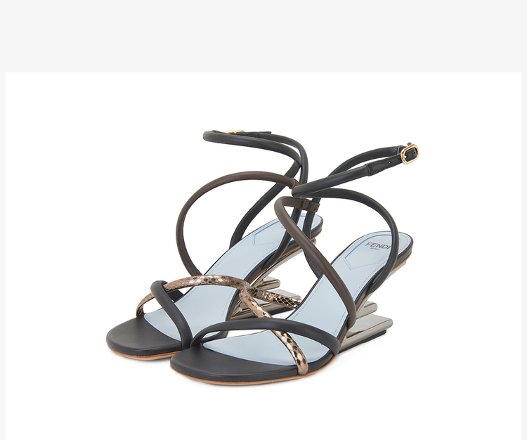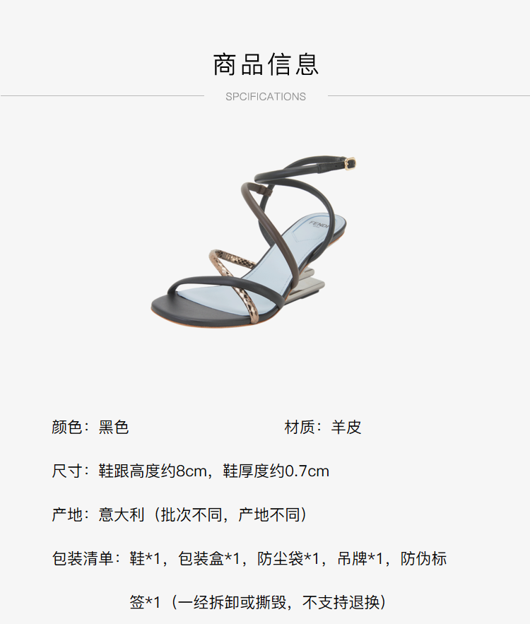 FENDI 芬迪新款女鞋交叉绑带坡跟高跟涼鞋8X8278-AHIU