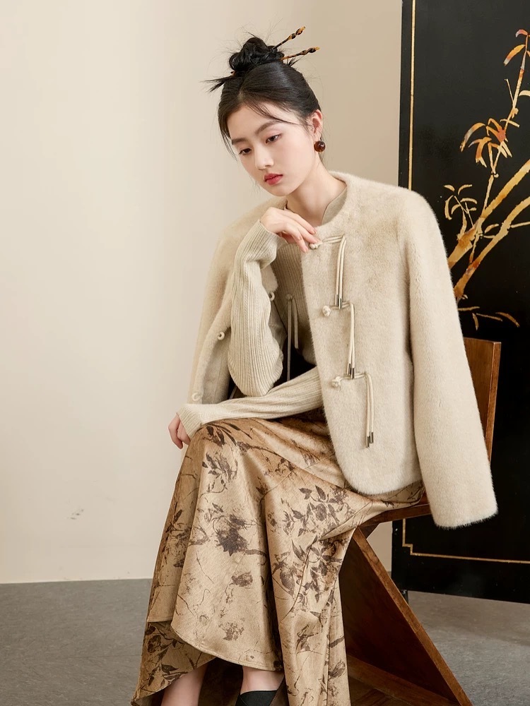 【M家同款】SUSX新中式欧貂绒皮草外套 纯手工定制盘扣 古典东方美A05325(下单3-7天发货)