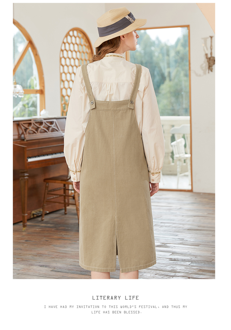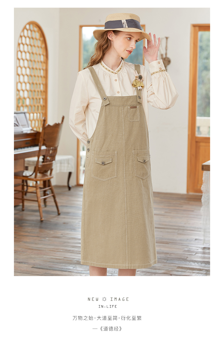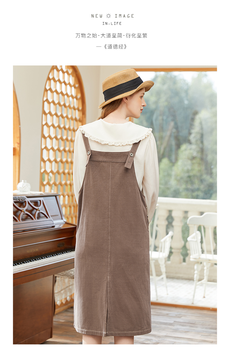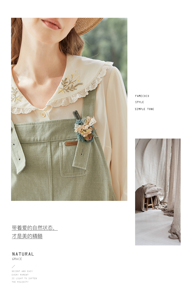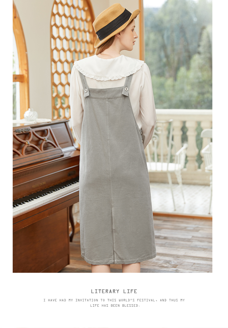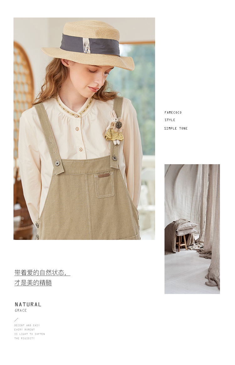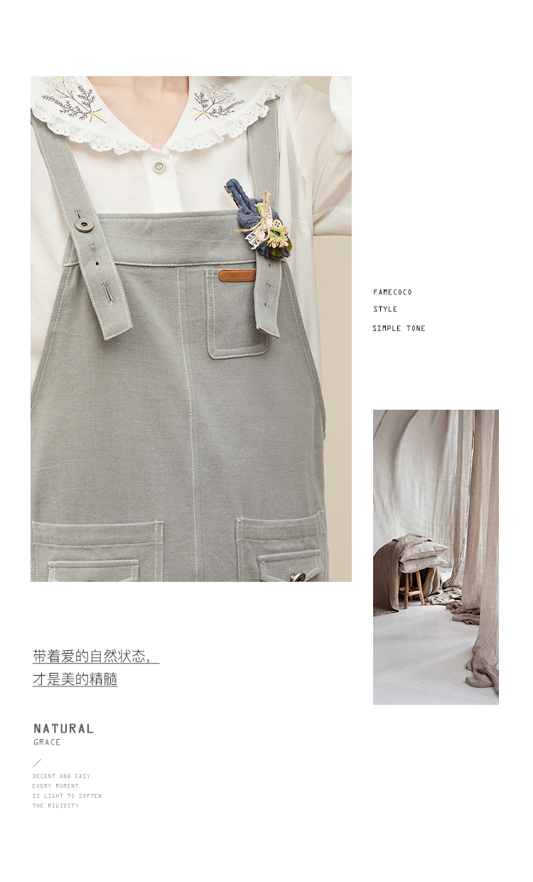 Famecoco范可儿宽松背带裙女春秋款可调节肩带连衣裙纯棉FAB1FE005