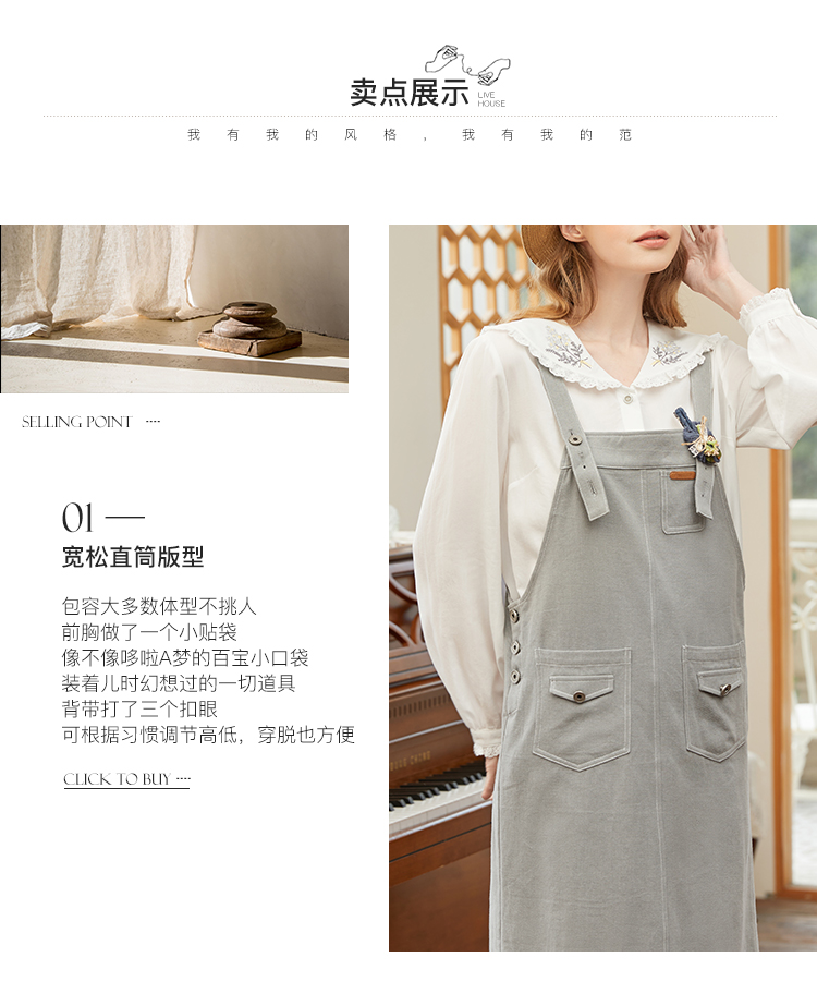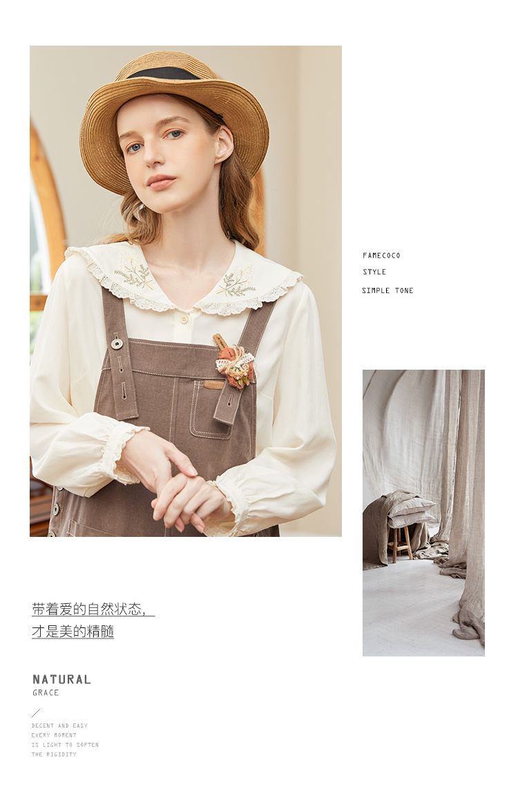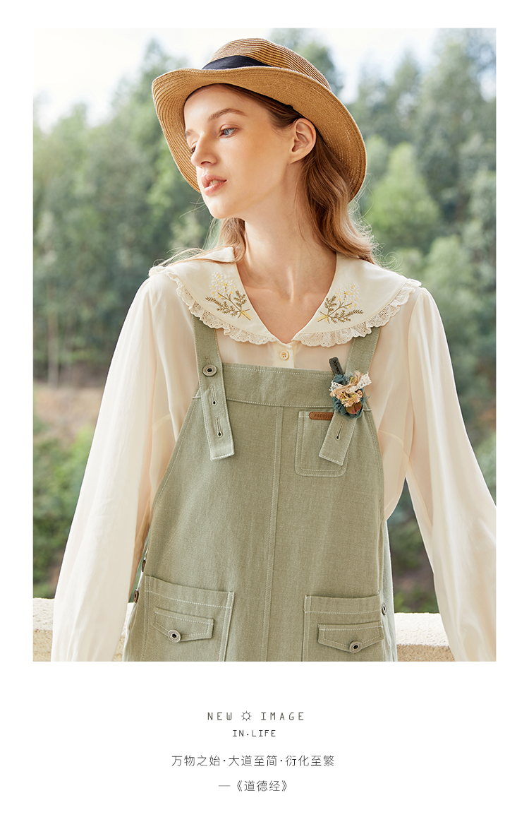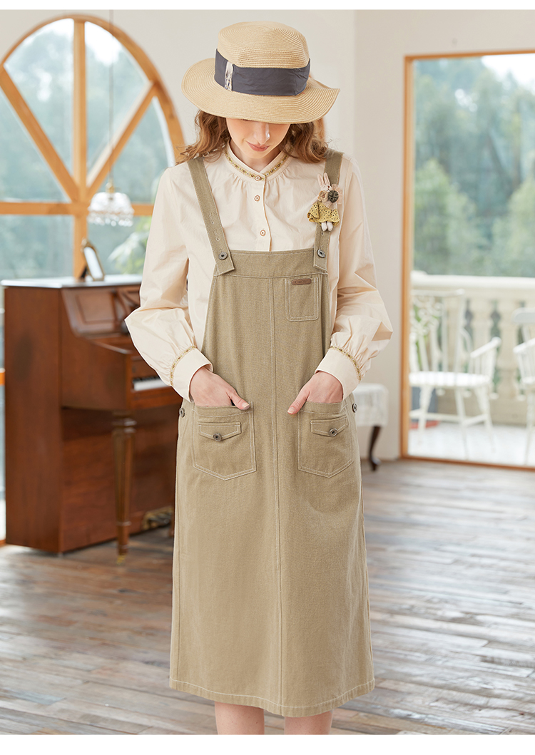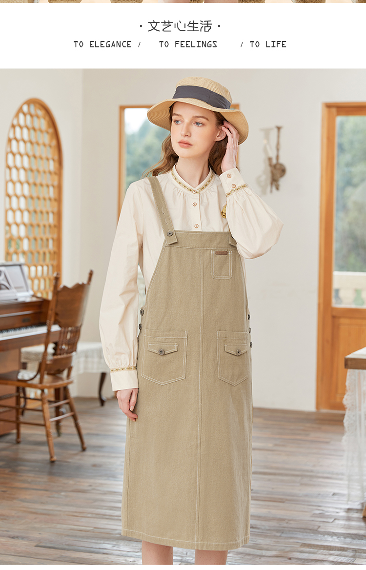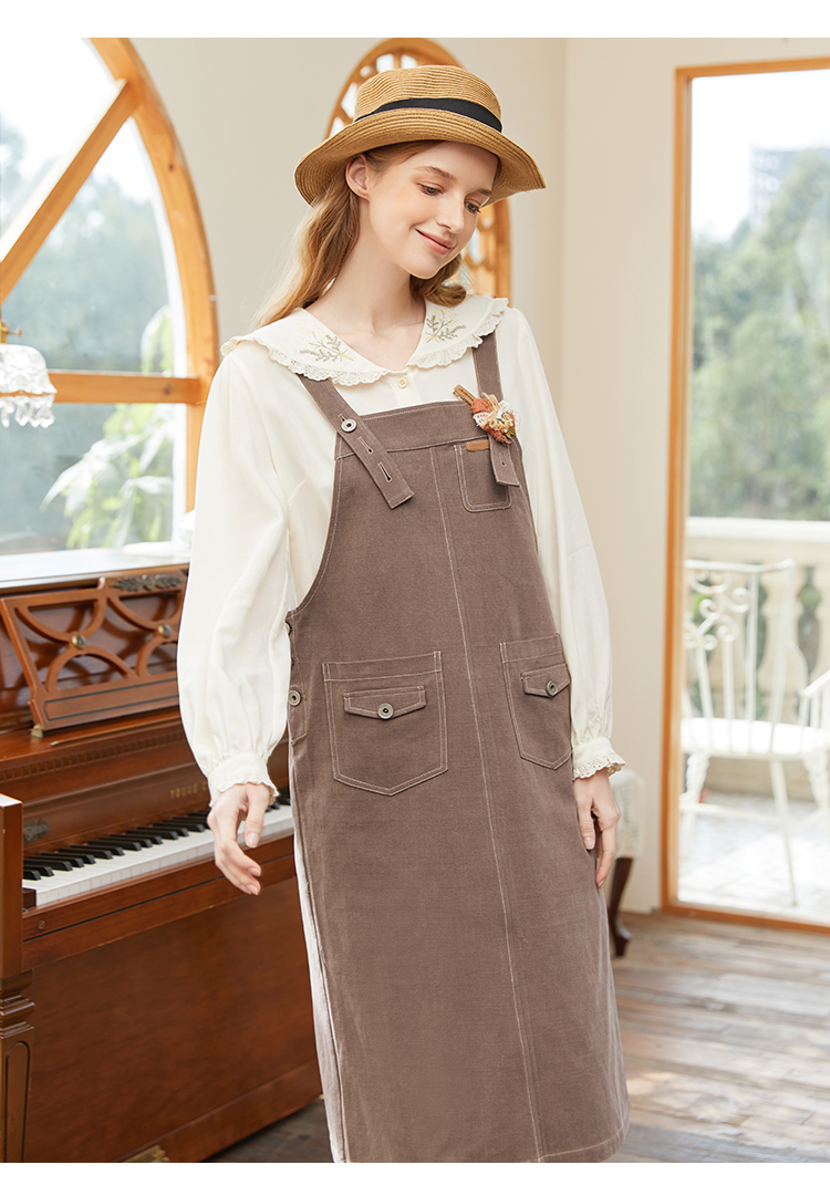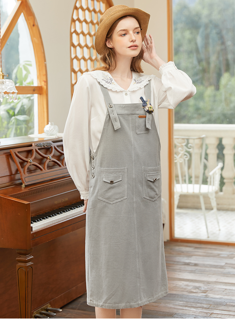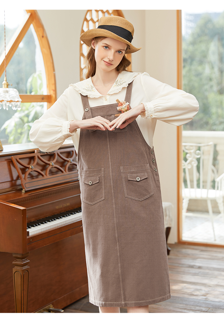Famecoco范可儿宽松背带裙女春秋款可调节肩带连衣裙纯棉FAB1FE005