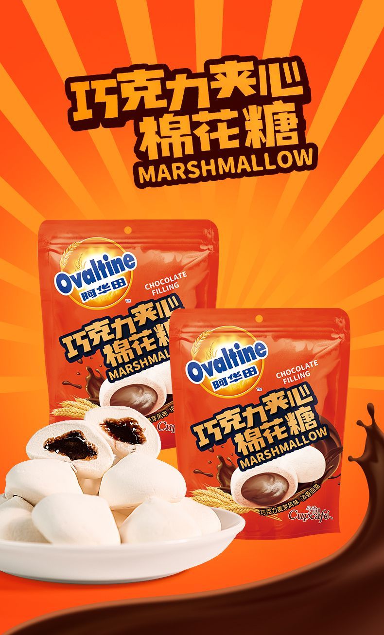 【爆款超低价预售 急单慎拍】阿华田棉花糖巧克力爆浆棉花糖独立小包装上班族休闲点心夹心软糖