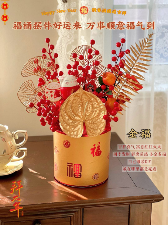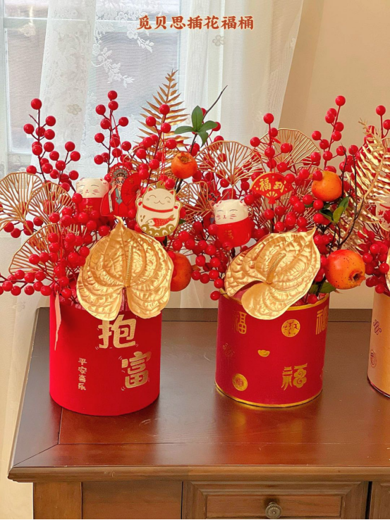 🌈【觅贝思插花福桶】🧧金福/大吉大利/抱富/红福🌸 迎新春💯财源滚滚来 发财💰果摆件熠熠生辉 增添一抹浓厚 🌟的节日气氛 😎是送给亲朋好友的最佳新年礼物 ‼新年装饰品没错了😍
