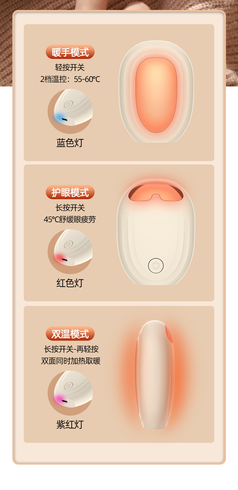 限时秒杀❗【热敷按摩!舒缓眼疲劳&暖手宝】快速升温,温暖无需等待,新款暖手宝充电宝二合一1xiaos手握迷你大容量复古usb电暖宝宝。rc