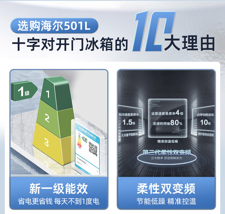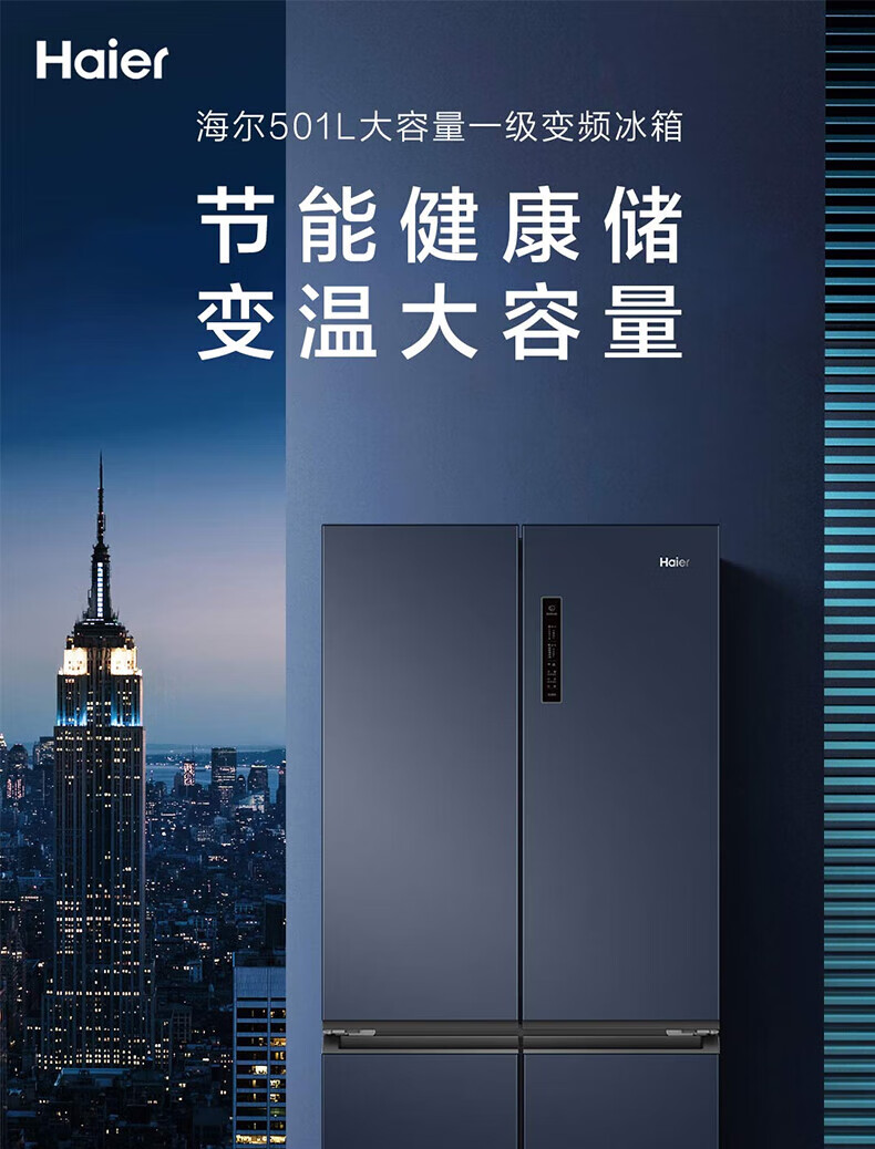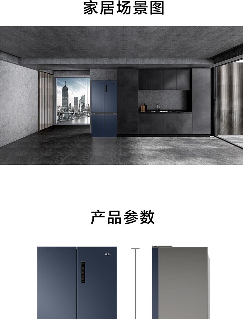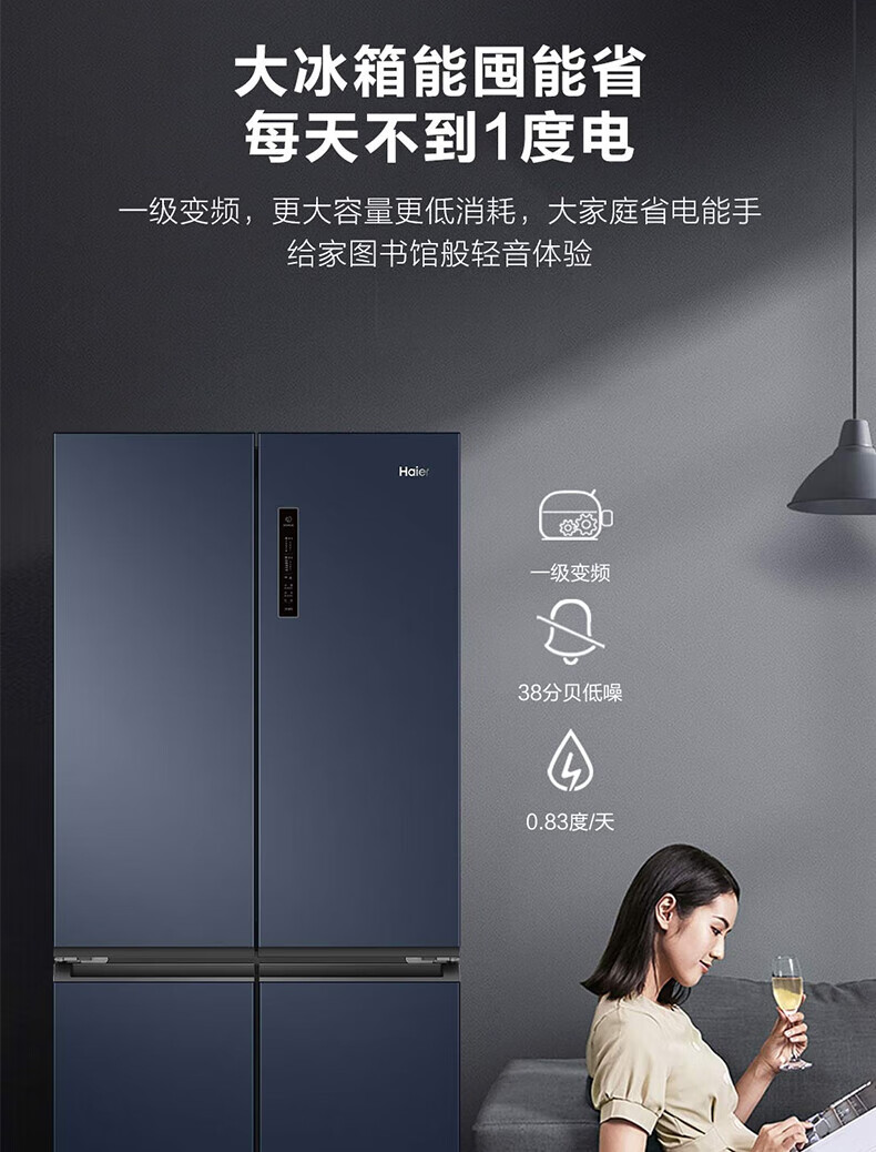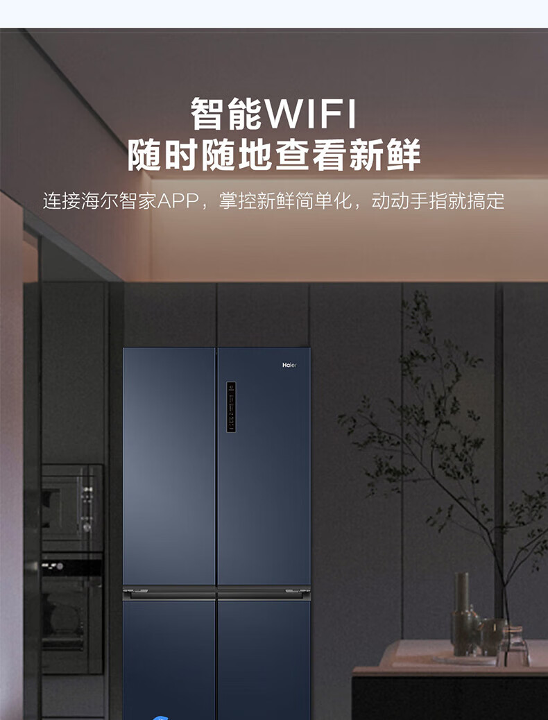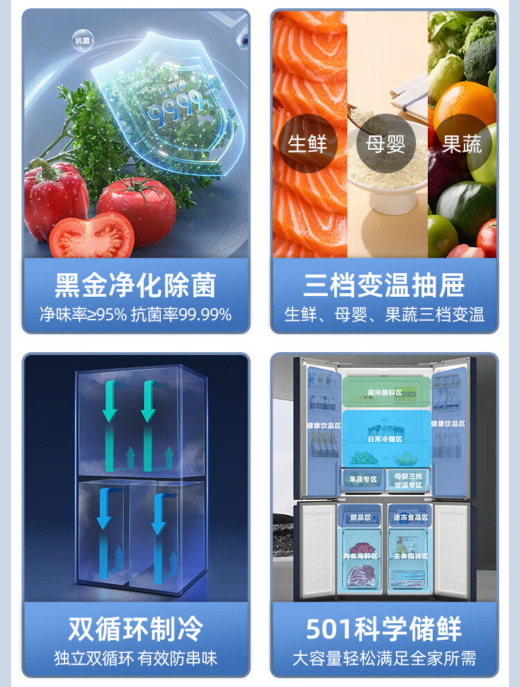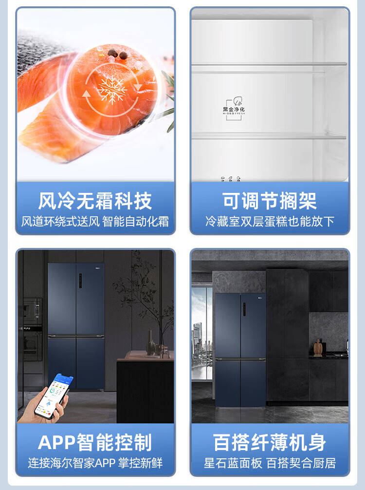 海尔(haier)冰箱501升双变频双循环黑金净化四开门十字门对开门风冷超薄大容量智能变温电冰箱星石蓝【双变频双循环】【黑金净化除菌】【三档变温】