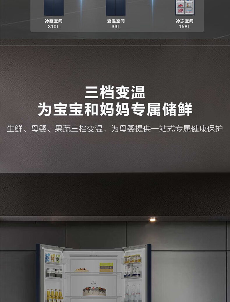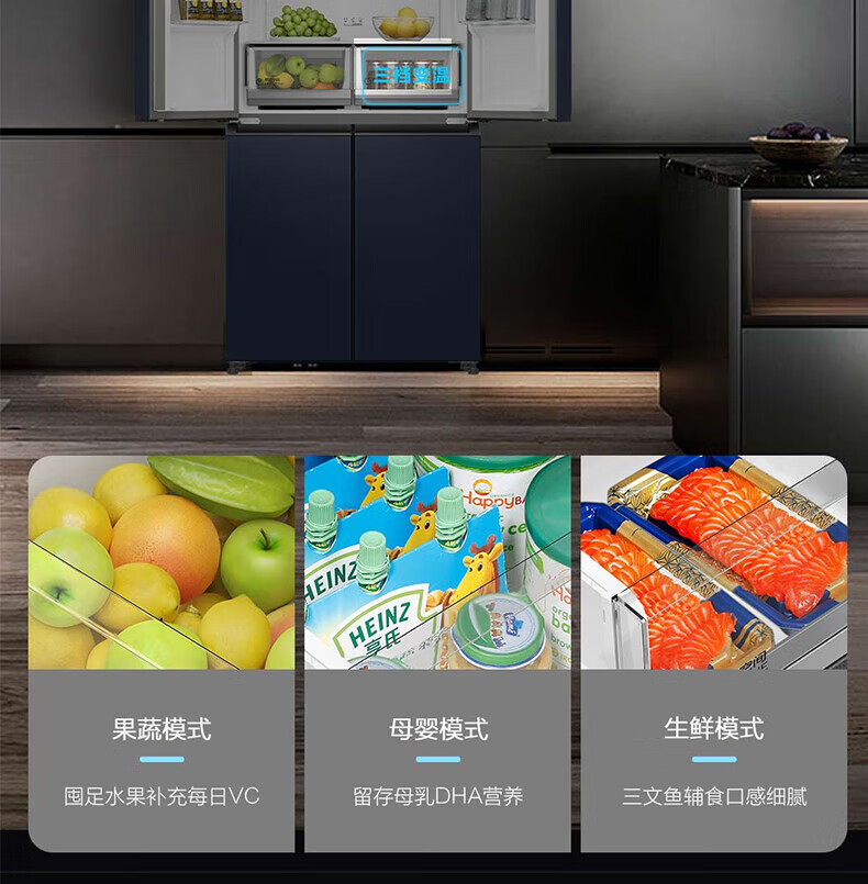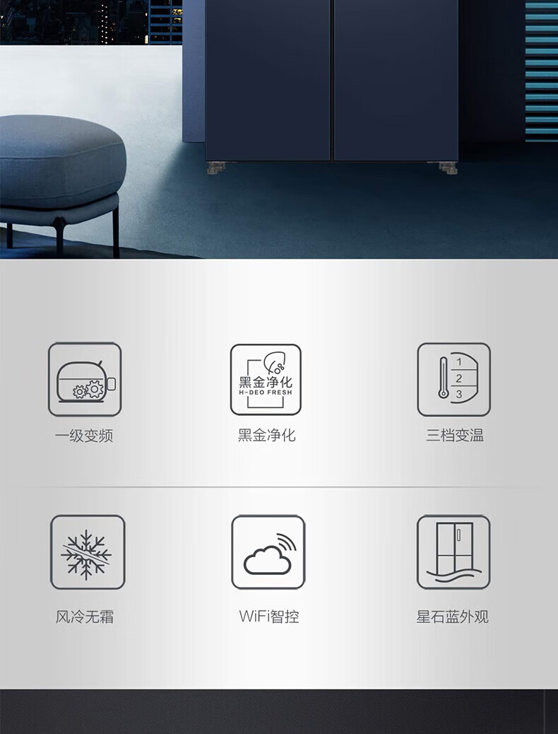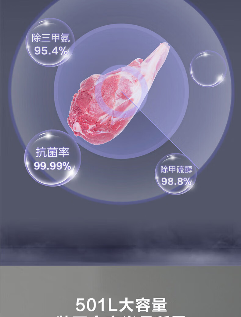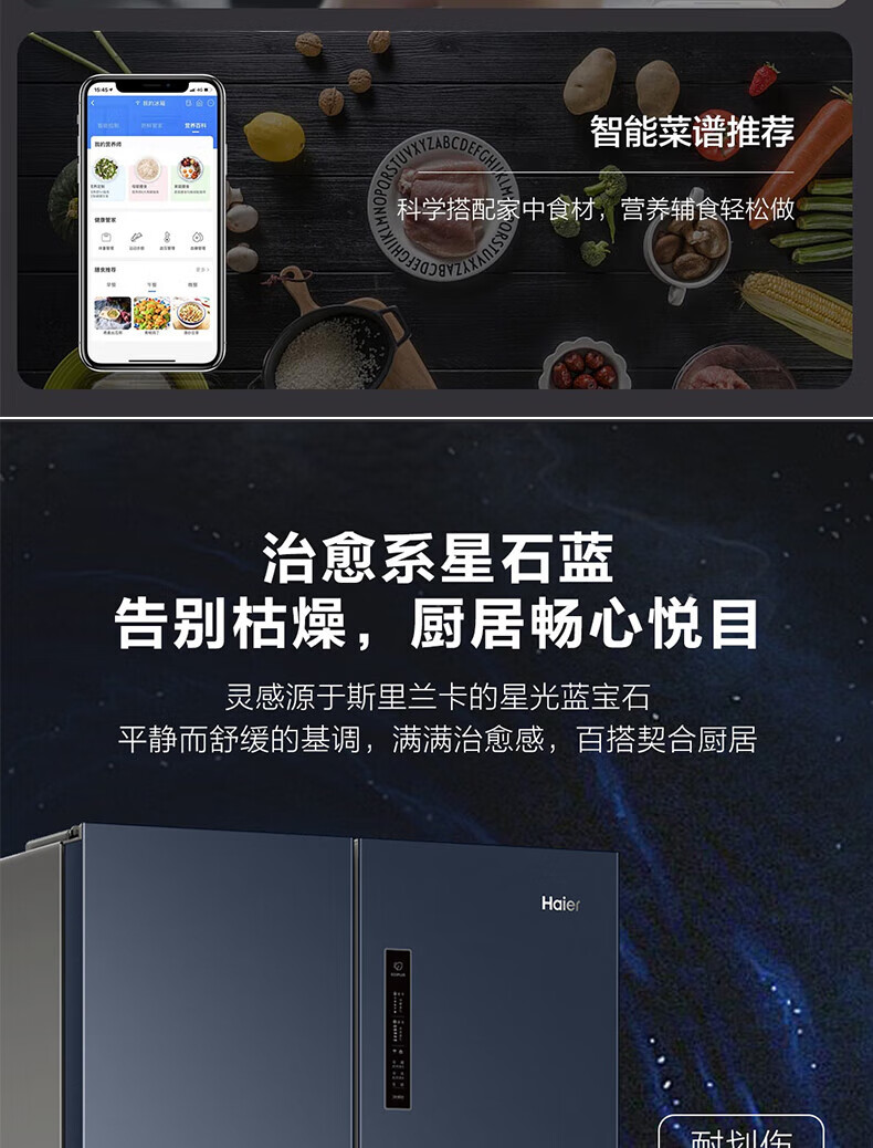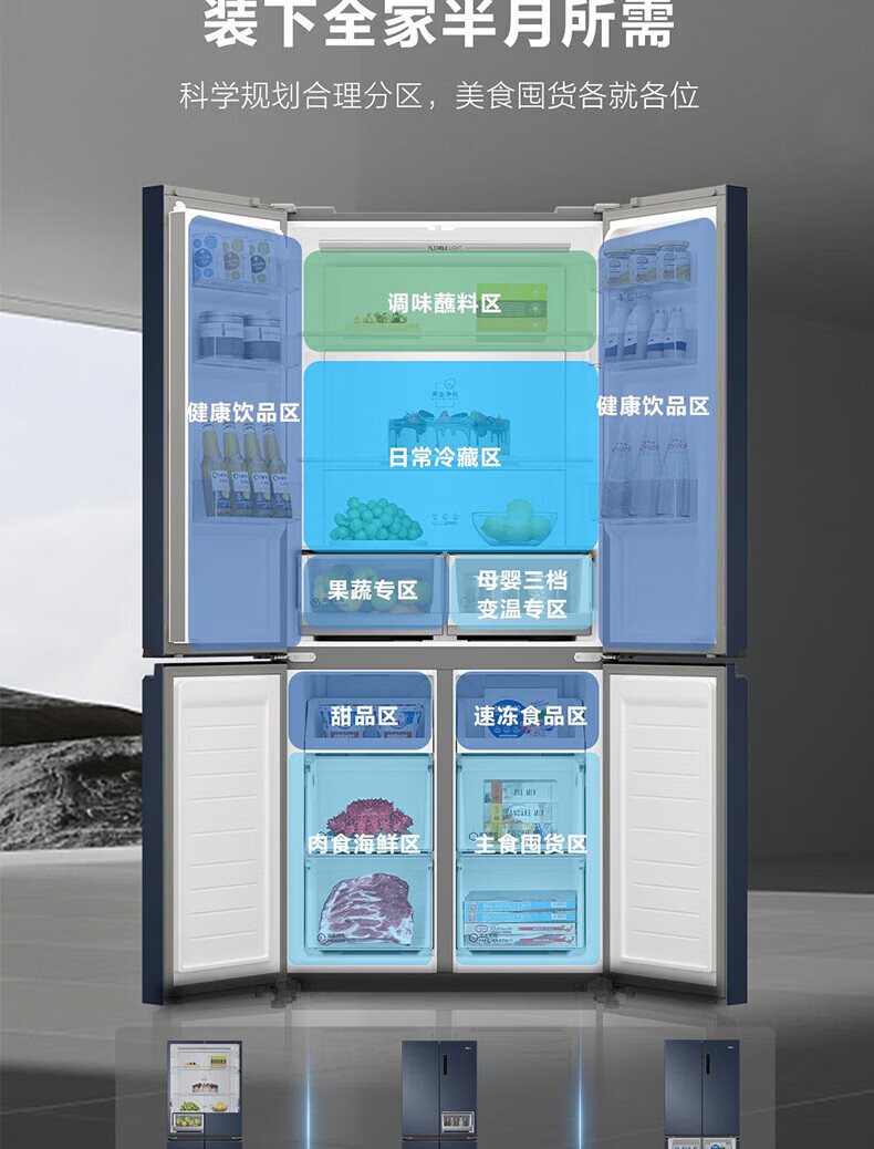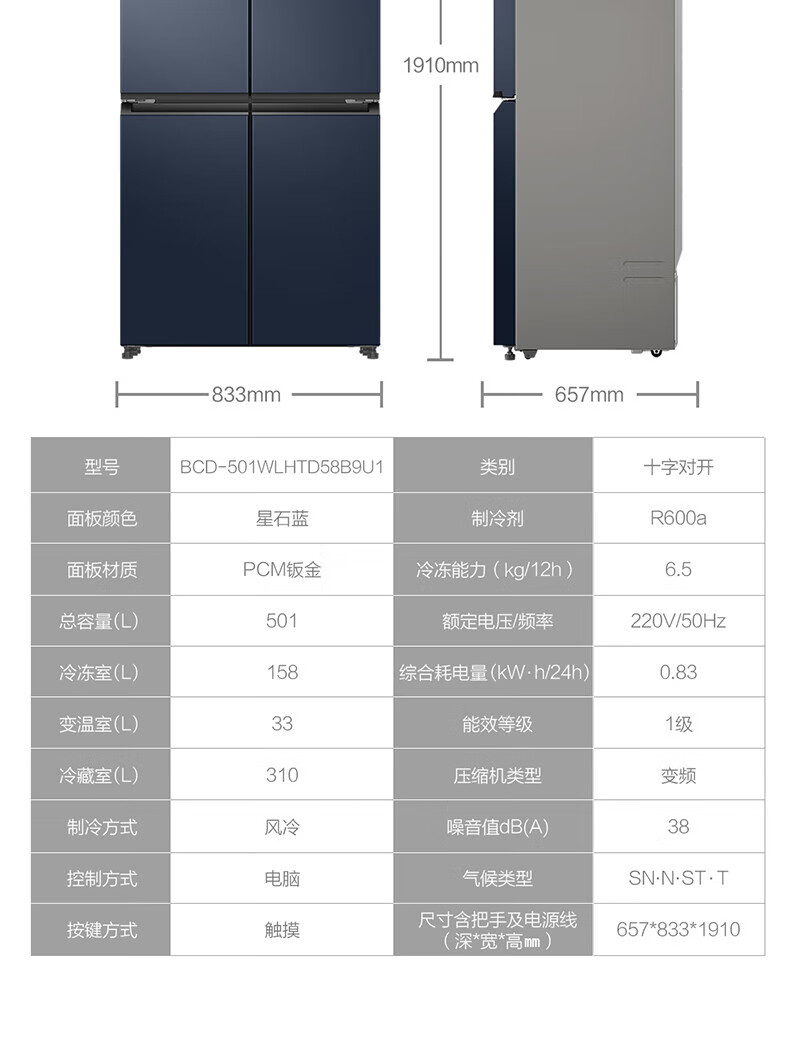 海尔(haier)冰箱501升双变频双循环黑金净化四开门十字门对开门风冷超薄大容量智能变温电冰箱星石蓝【双变频双循环】【黑金净化除菌】【三档变温】