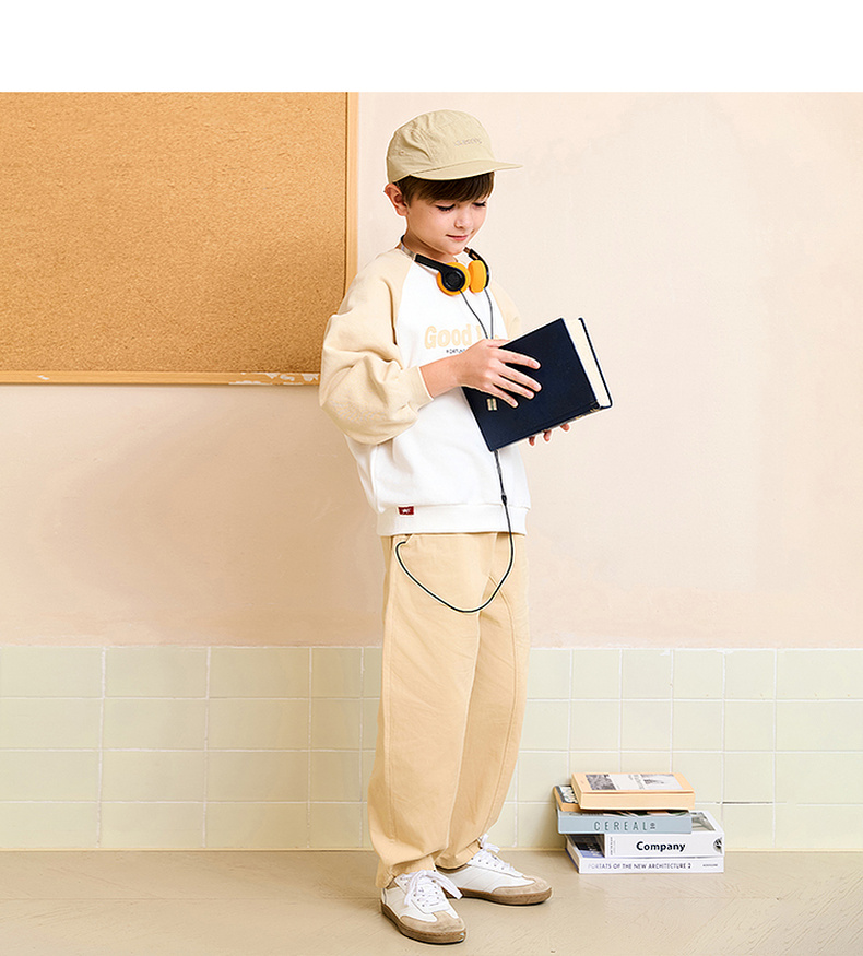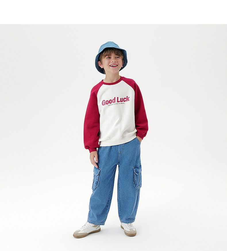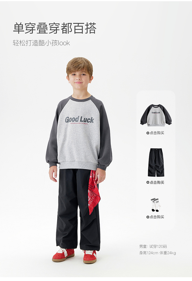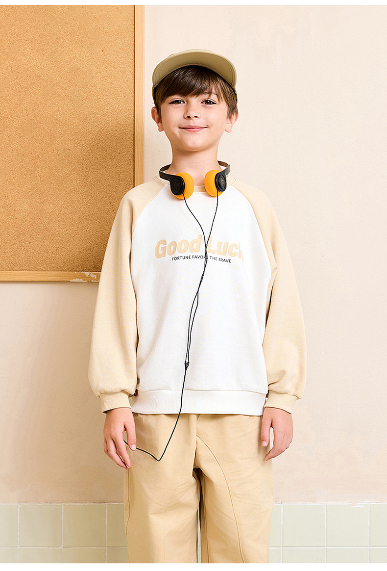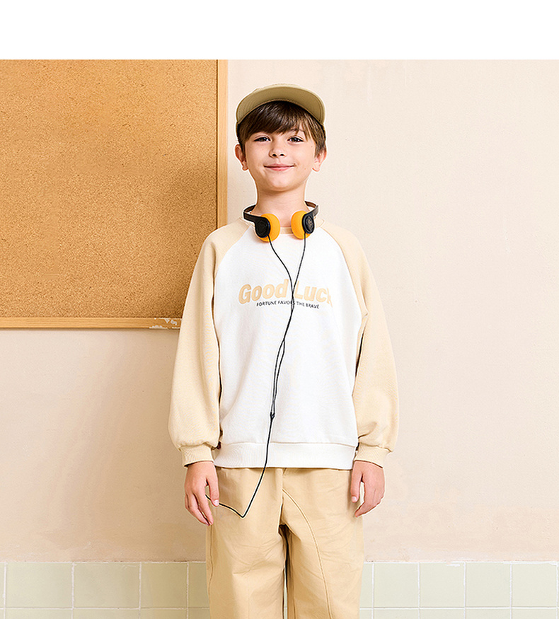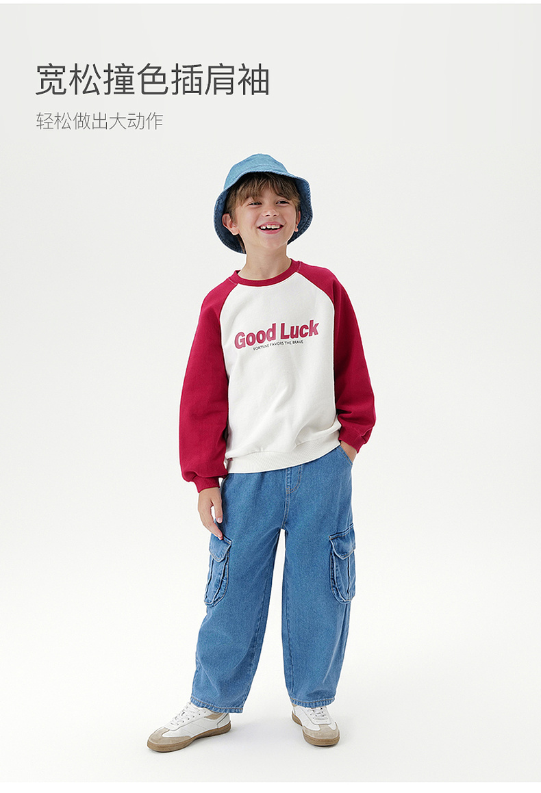 马克珍妮男童复古拼色字母卫衣2025年秋装新款551162