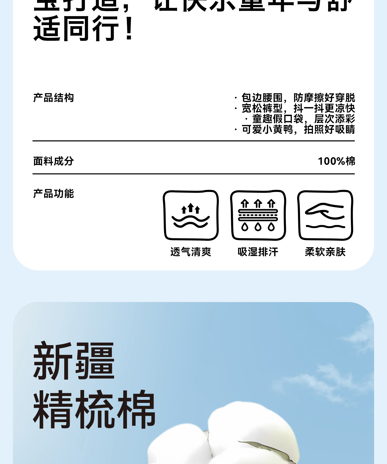 bduck小黄鸭童装夏季男童休闲裤90-130 BF2652003