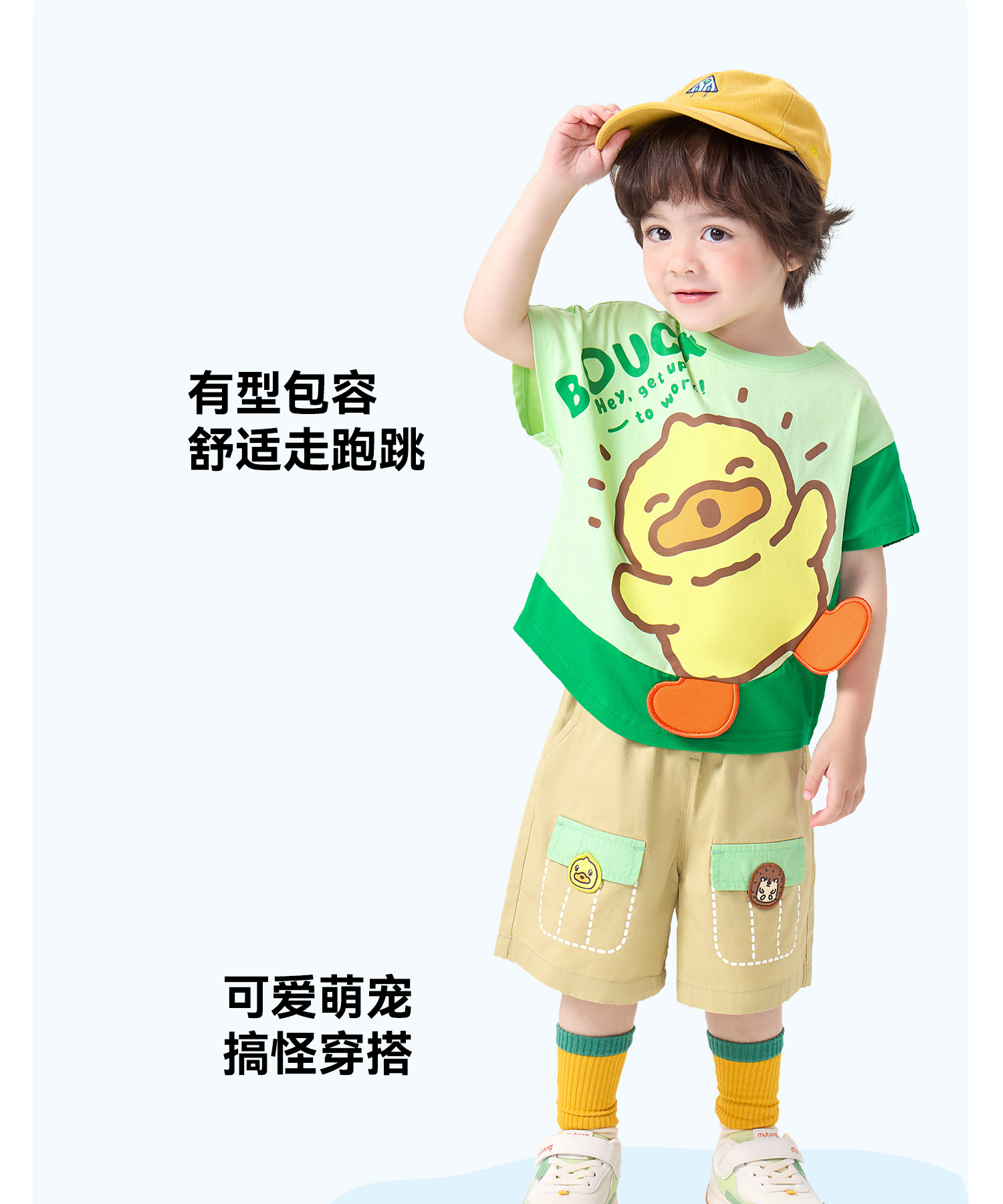 [驱蚊抗菌]小黄鸭童装男童短袖T恤宝宝夏装纯棉上衣儿童半袖衣服90-140 BF2701037