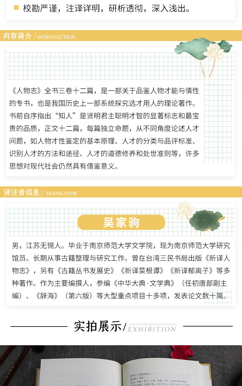 人物志精装 中华传统文化经典全注新译精讲丛书 许嘉璐先生主编原版吴家驹译注国学名著正版