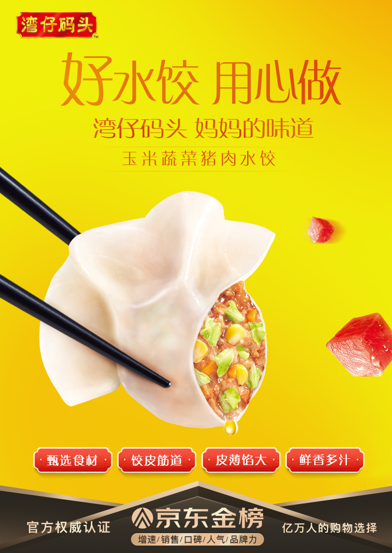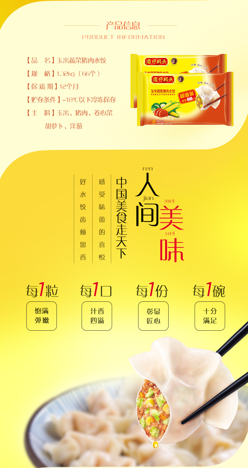 湾仔码头 玉米蔬菜猪肉水饺 1320g 66只 早餐夜宵 火锅食材 精选面粉 方便菜 速冻饺子