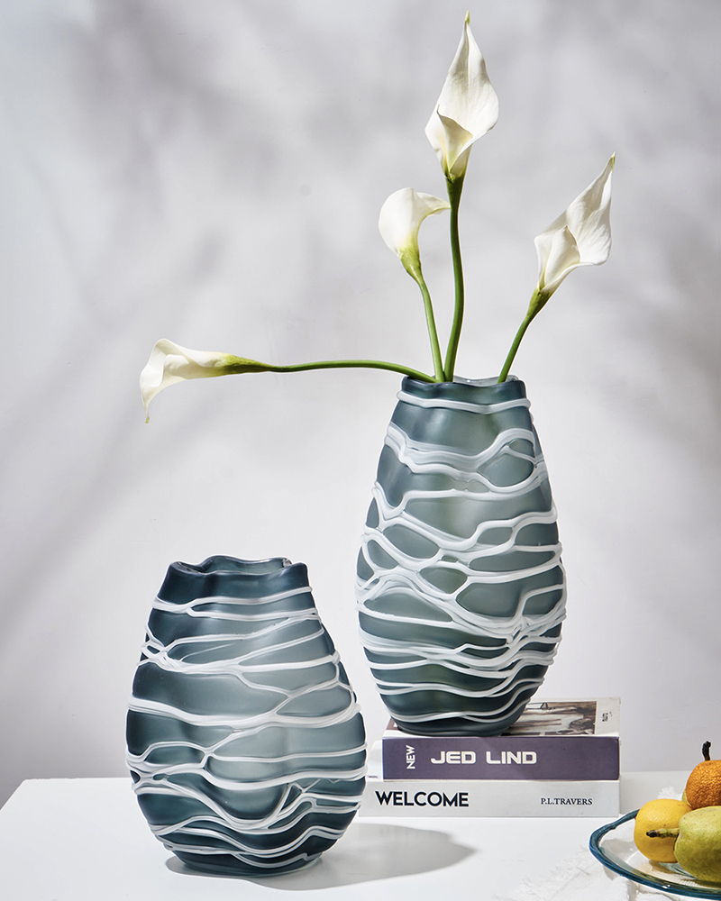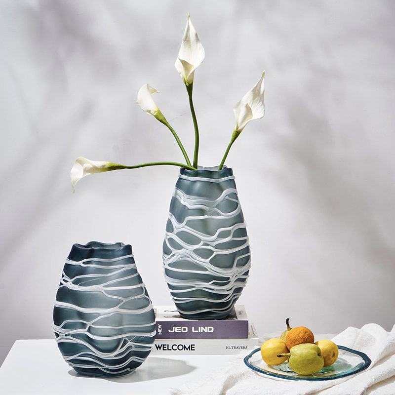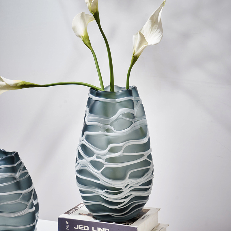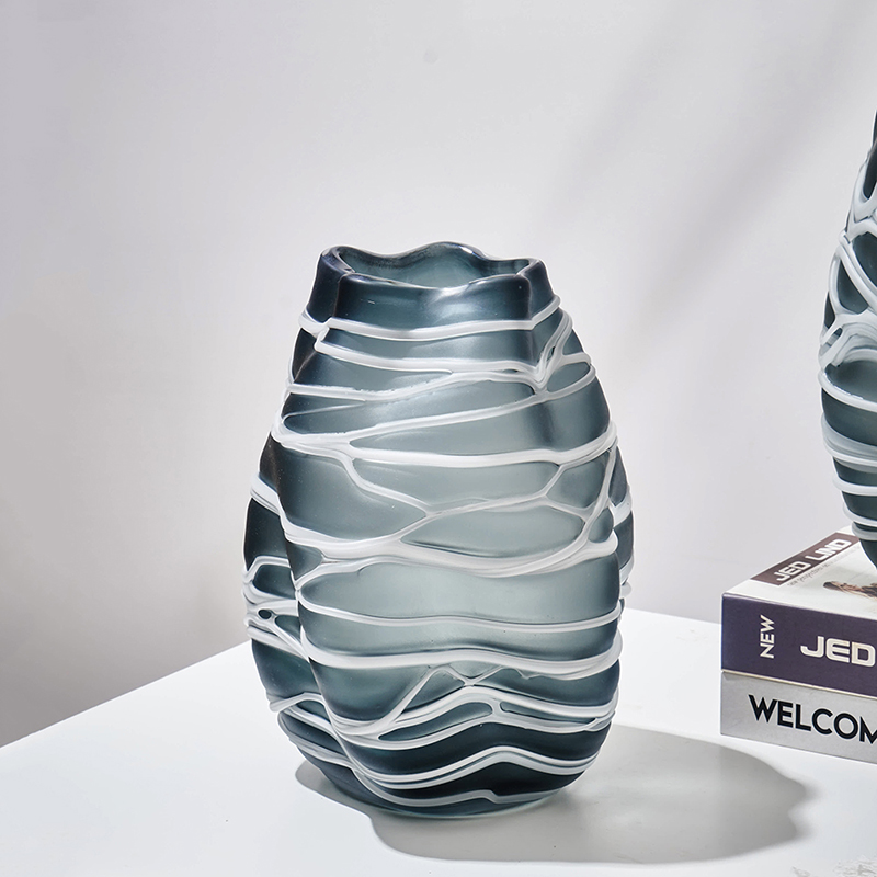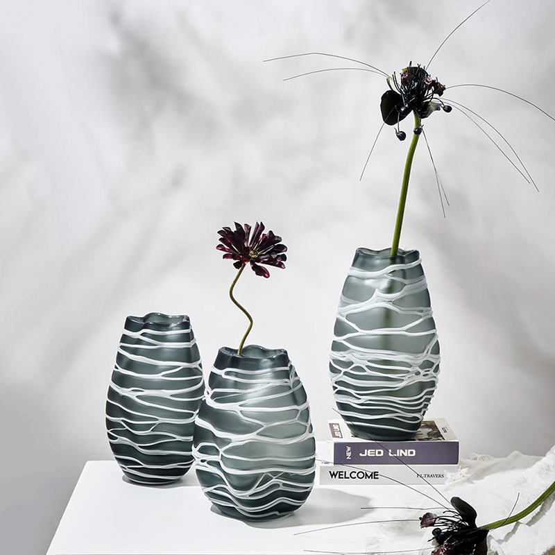 现代简约创意手工缠丝玻璃花瓶玄关客厅居家台面哑光水培小口摆件
