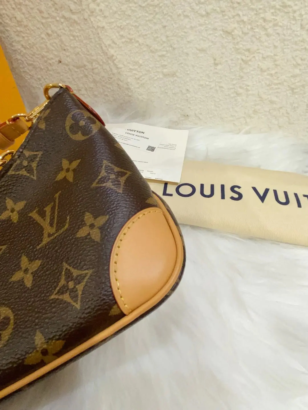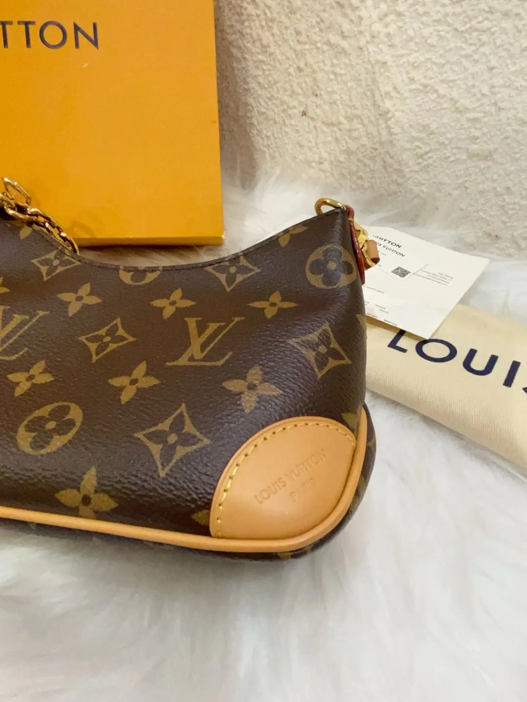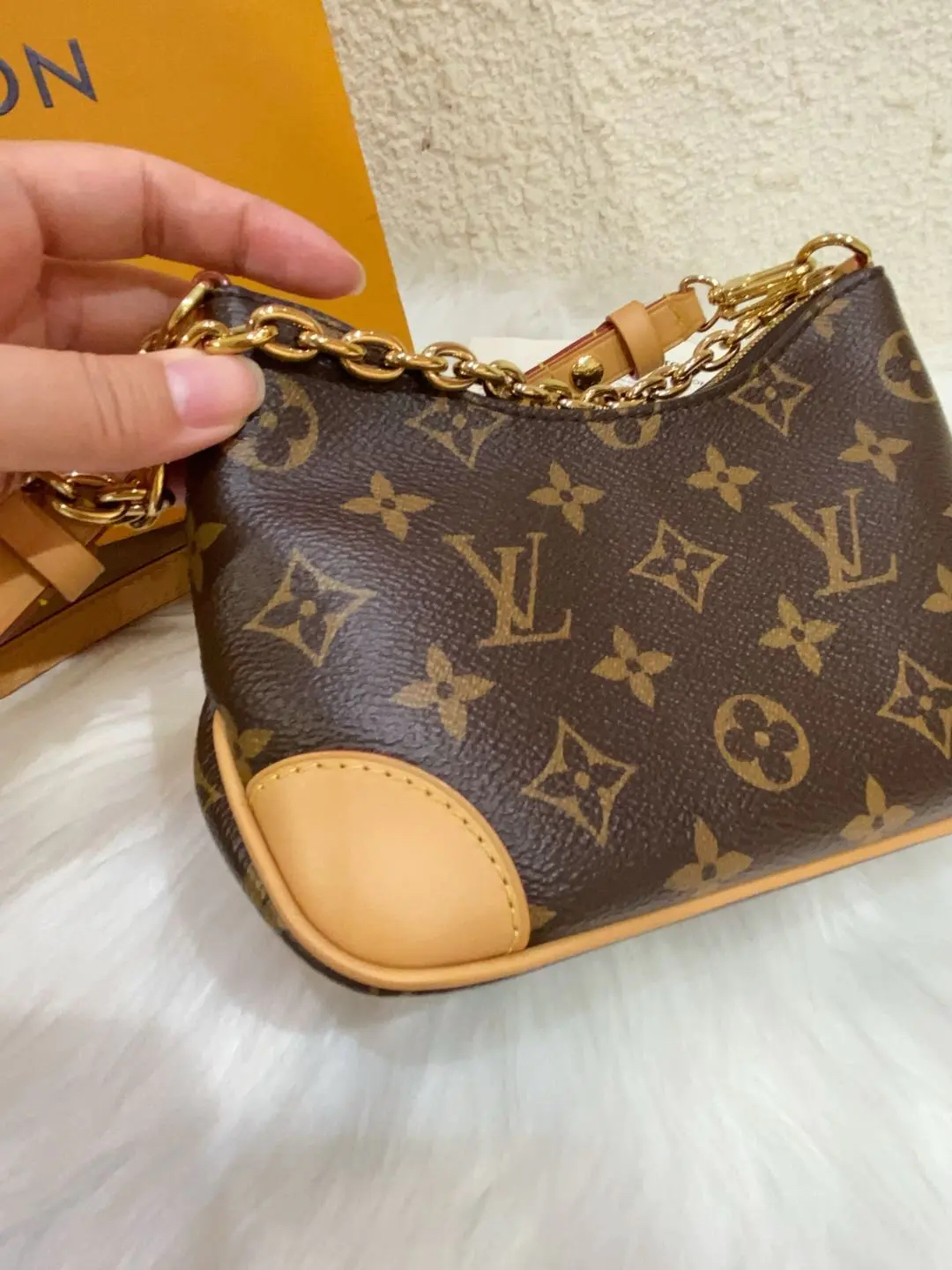 【商品详情】正品二手 LV boulogne 老花 mini 黄牛角 斜挎包😾98新 20x14 配件:肩带x2 防尘袋。非常难得的mini尺寸