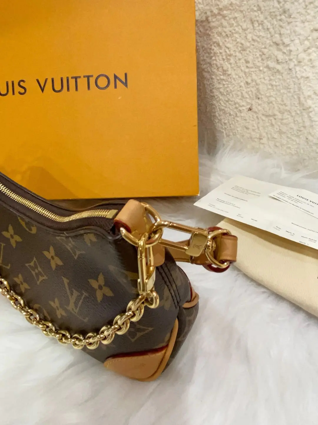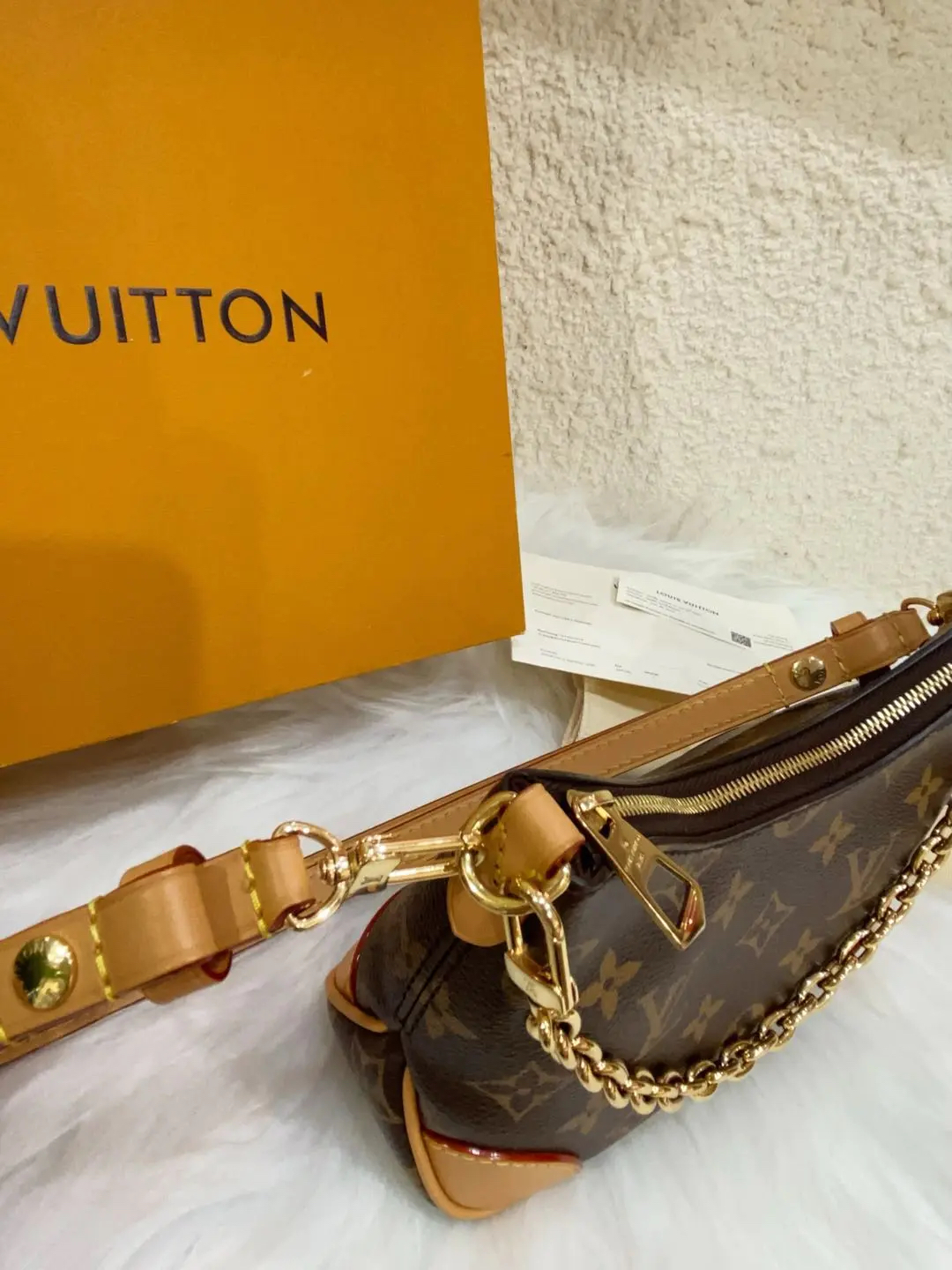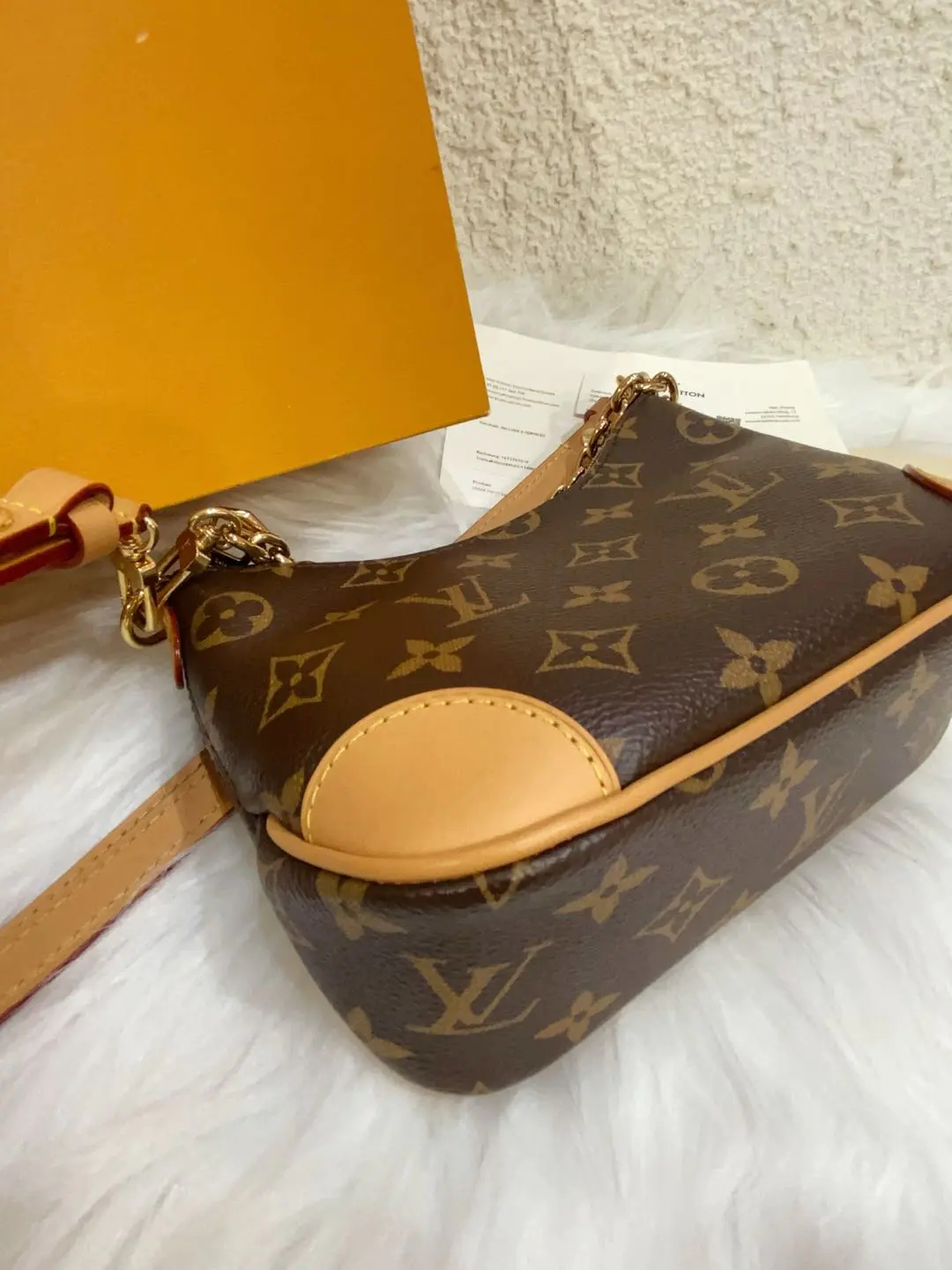 【商品详情】正品二手 LV boulogne 老花 mini 黄牛角 斜挎包😾98新 20x14 配件:肩带x2 防尘袋。非常难得的mini尺寸