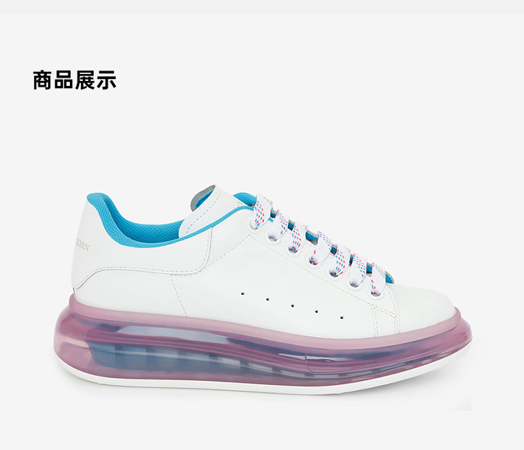ALEXANDER MCQUEEN 亚历山大麦昆 女士小牛皮白尾气垫粉色休闲运动鞋 白色 666893 WHYBY 9468