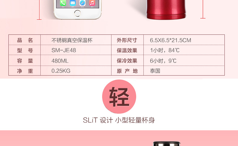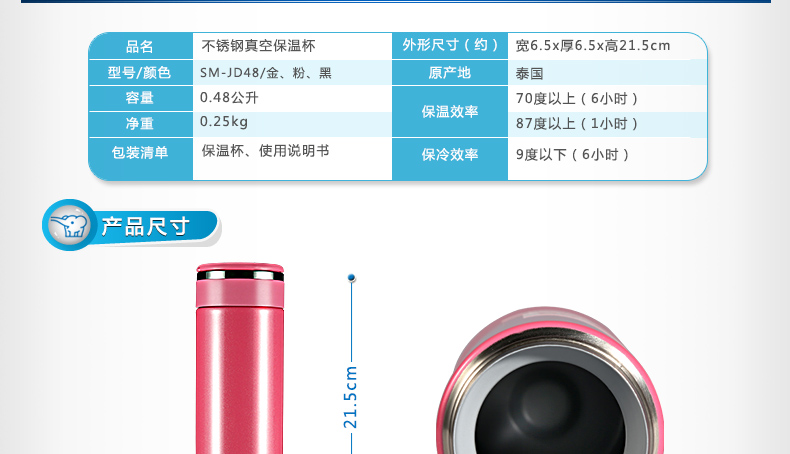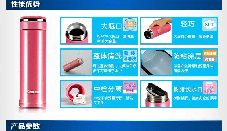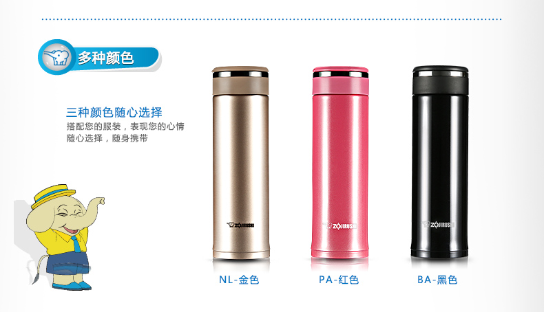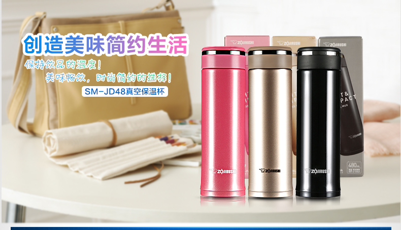 象印(ZO JIRUSHI) 保温杯进口不锈钢双层真空保冷杯时尚旅行办公水杯子480ml SM-JZ48-TD棕黑色