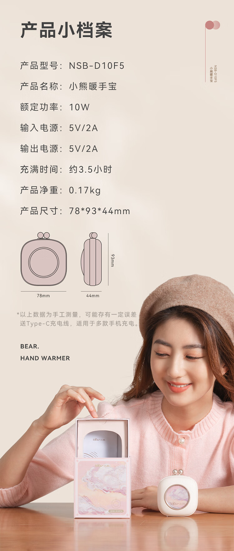 【分仓直发包邮】小熊暖手宝NSB-D10F5