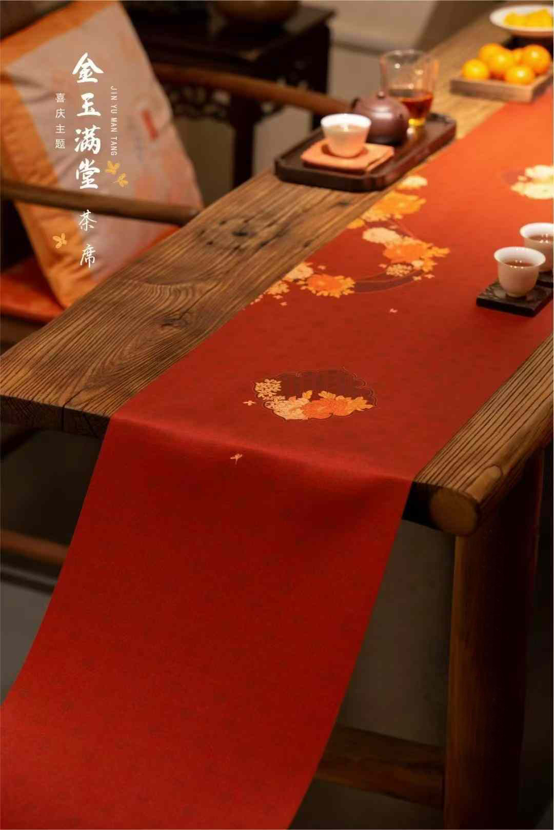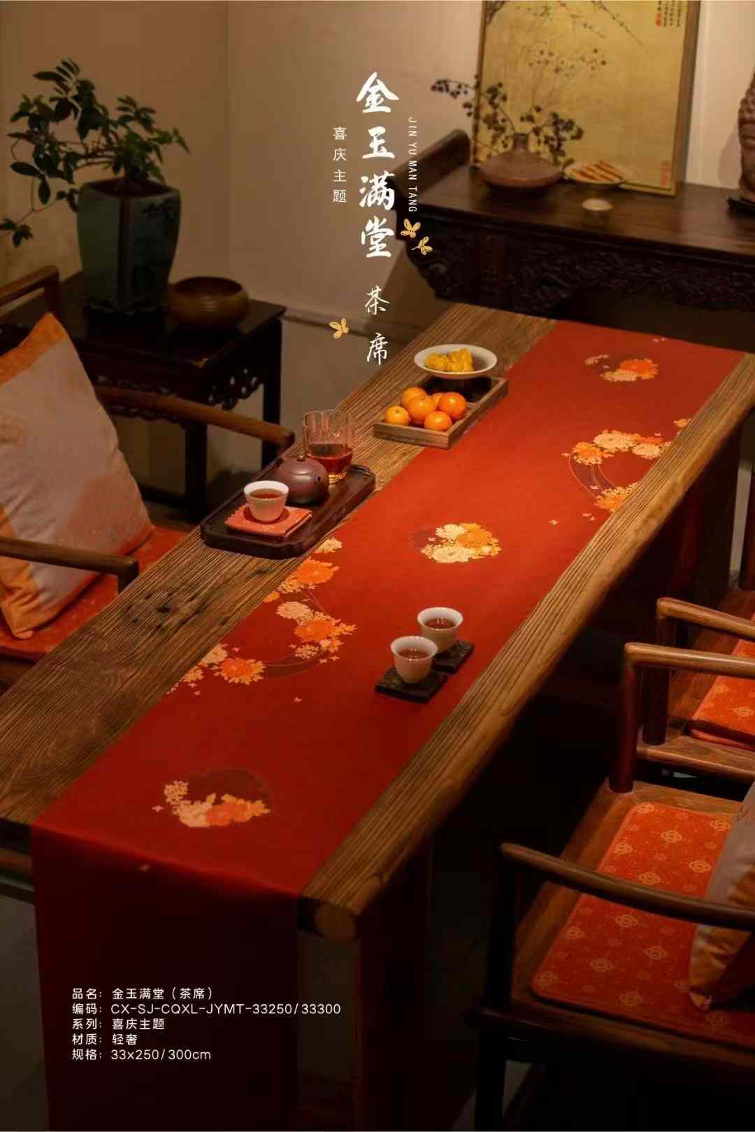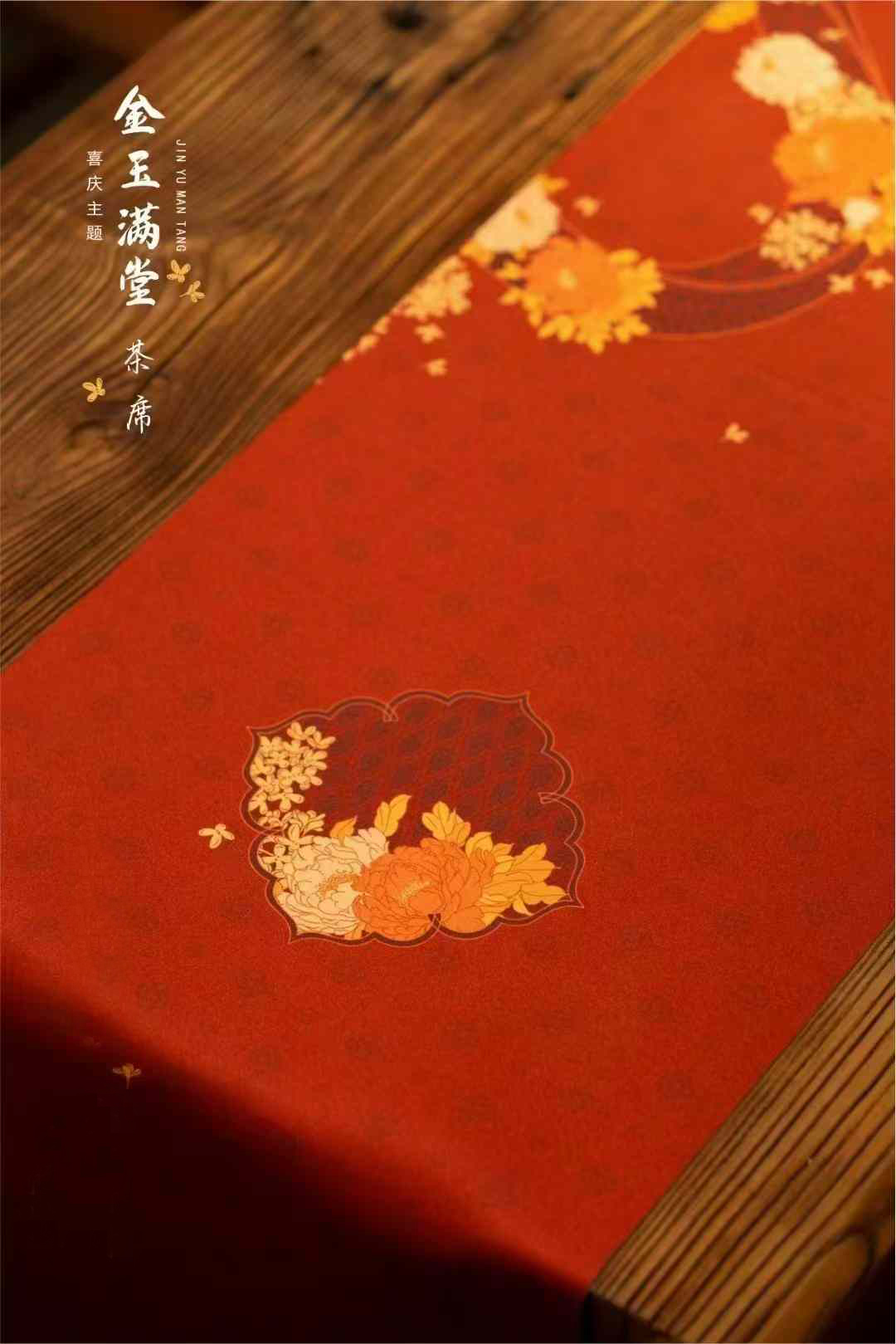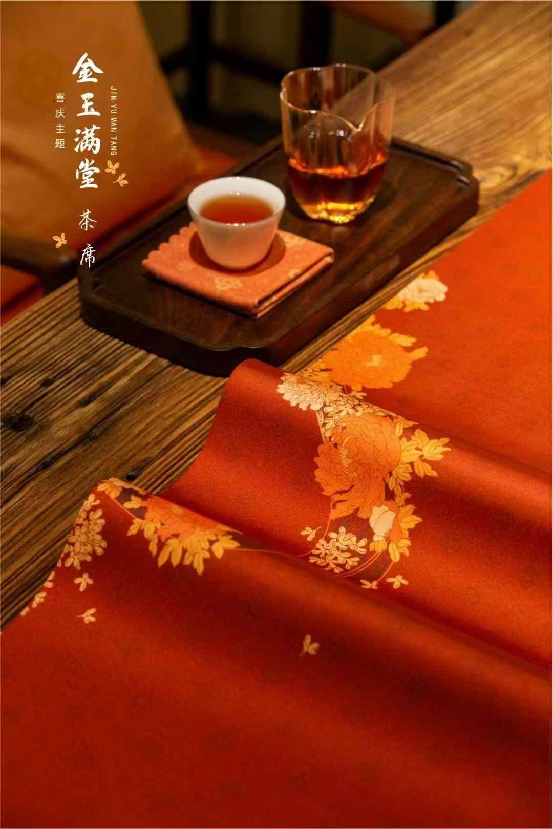 金玉满堂茶席/祥瑞迎春喜庆丝锦茶席33x250/300cm