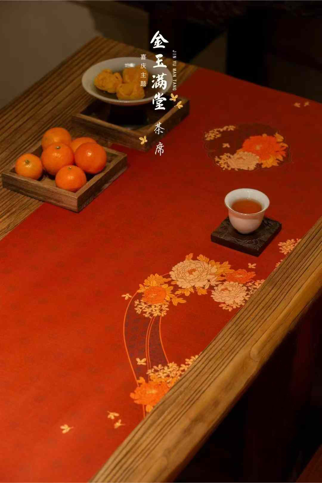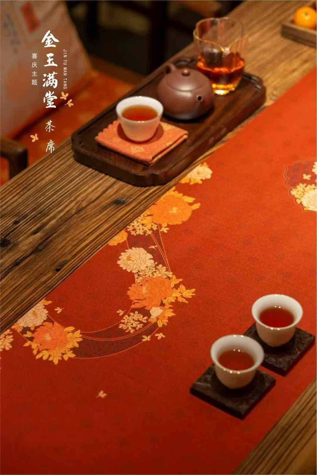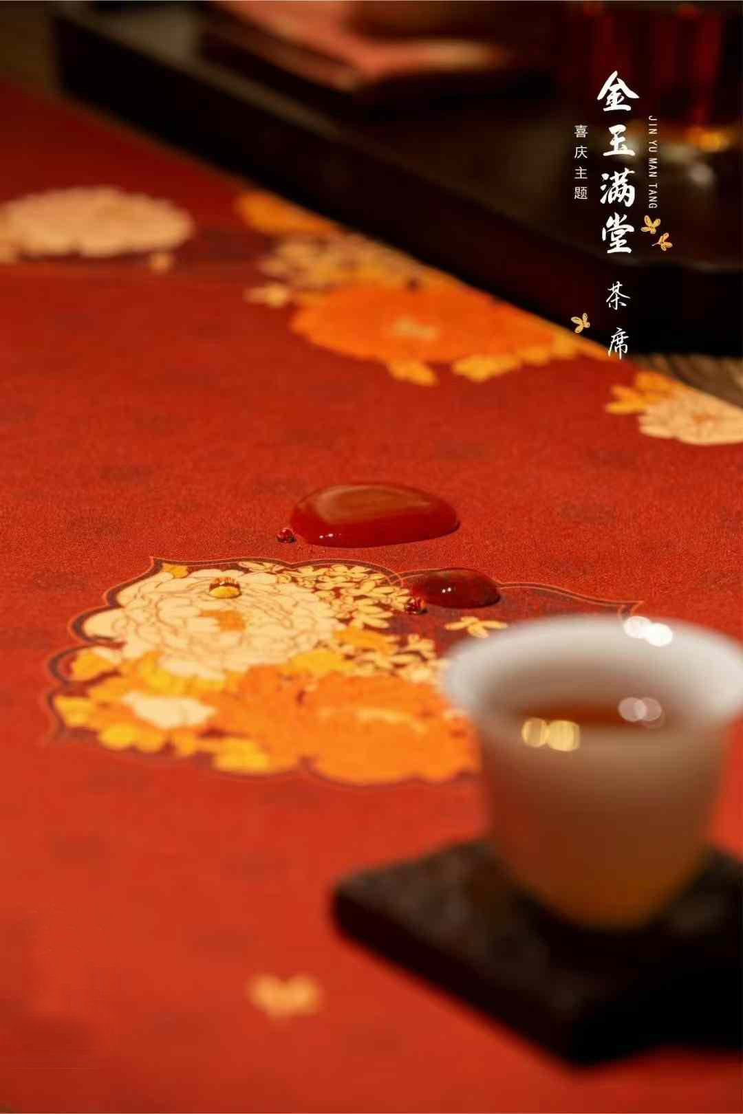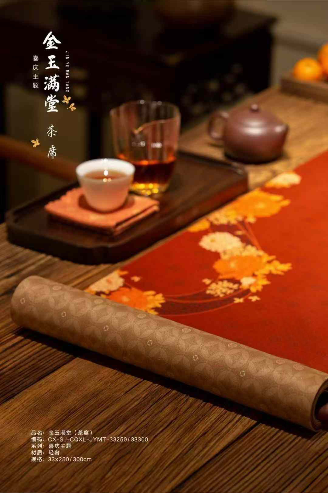 金玉满堂茶席/祥瑞迎春喜庆丝锦茶席33x250/300cm