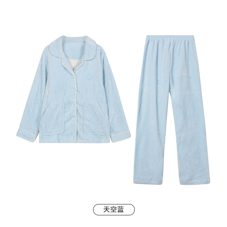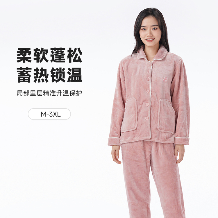 都市丽人睡衣双面法兰绒睡衣女士家居服长袖长裤法兰绒套装LHH0B6