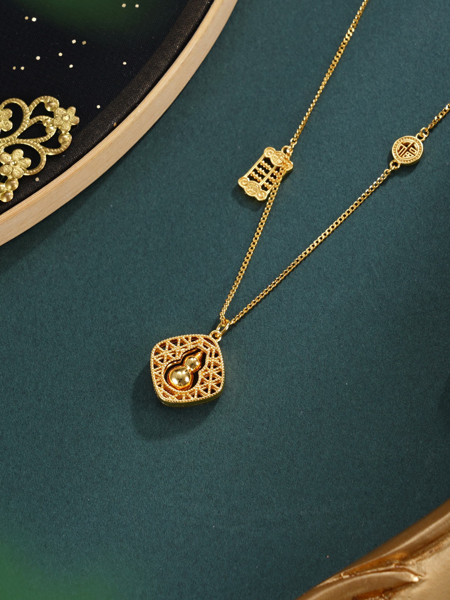 【寓意】:葫芦吊坠象征"福禄双全",搭配算盘小坠饰,象征妙算如意。二者结合,寓意既得天地馈赠,亦掌生活乾坤,福运与智慧常伴。