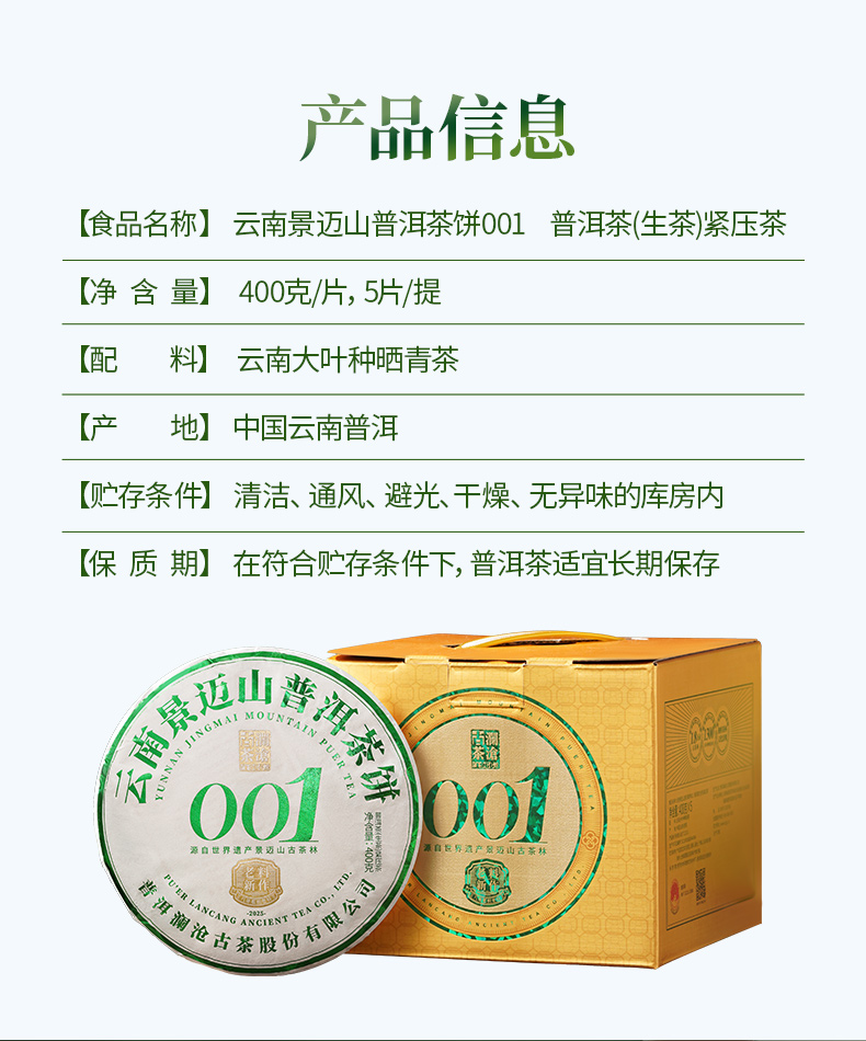 澜沧古茶2025年001云南名山古树明前春茶大饼400g
