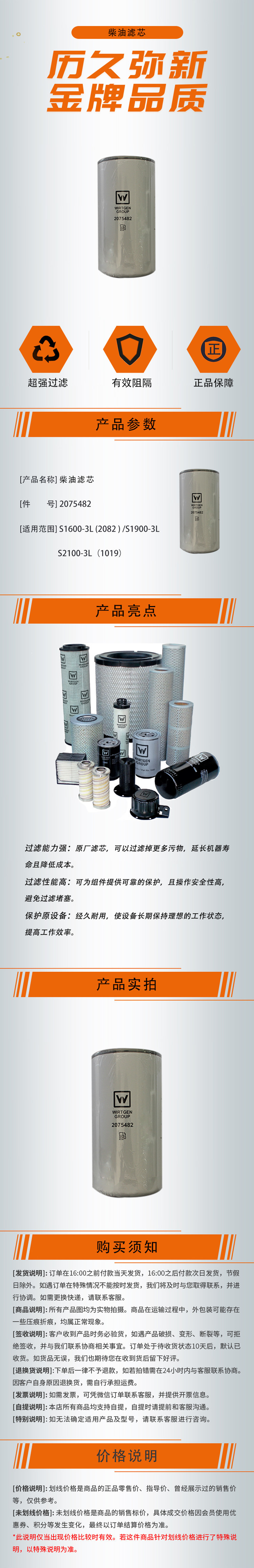 【柴油滤芯2075482】 适用于S1600-3L (2082 ) /S1900-3L/S2100-3L(1019)