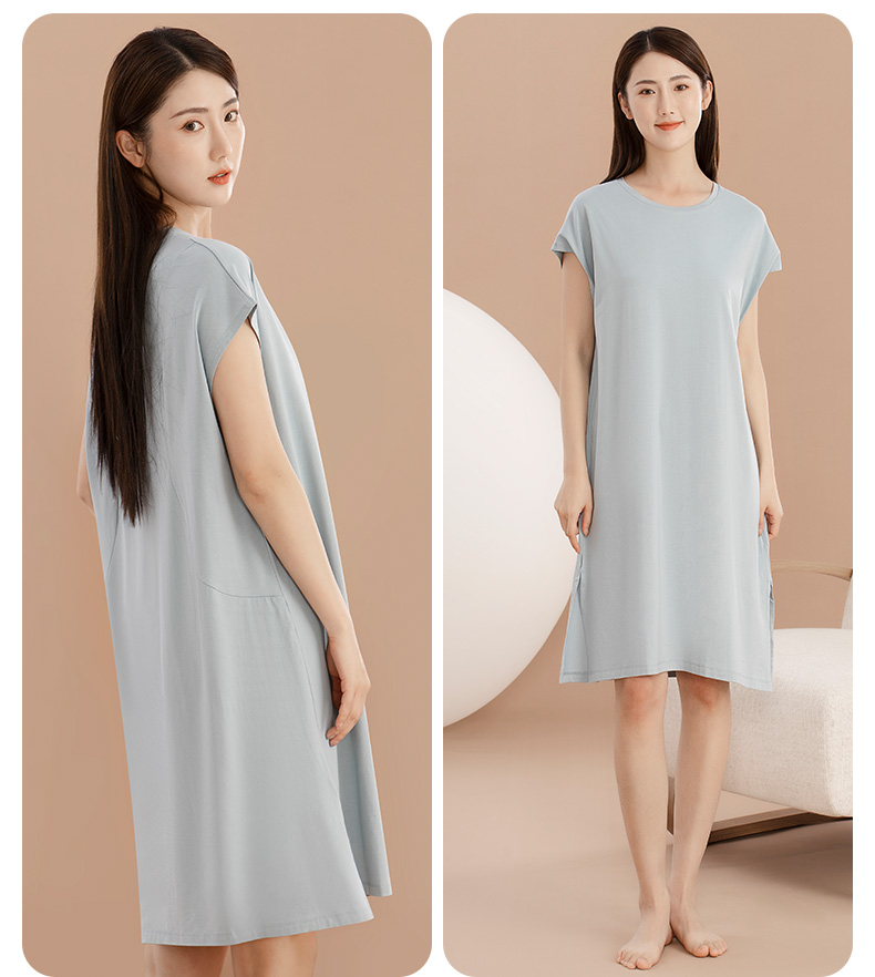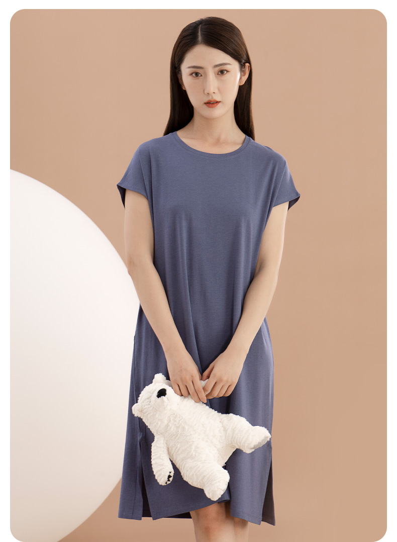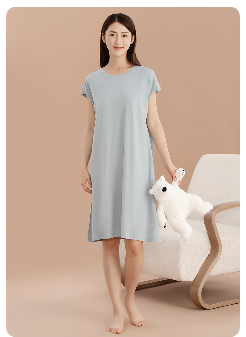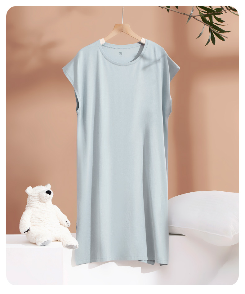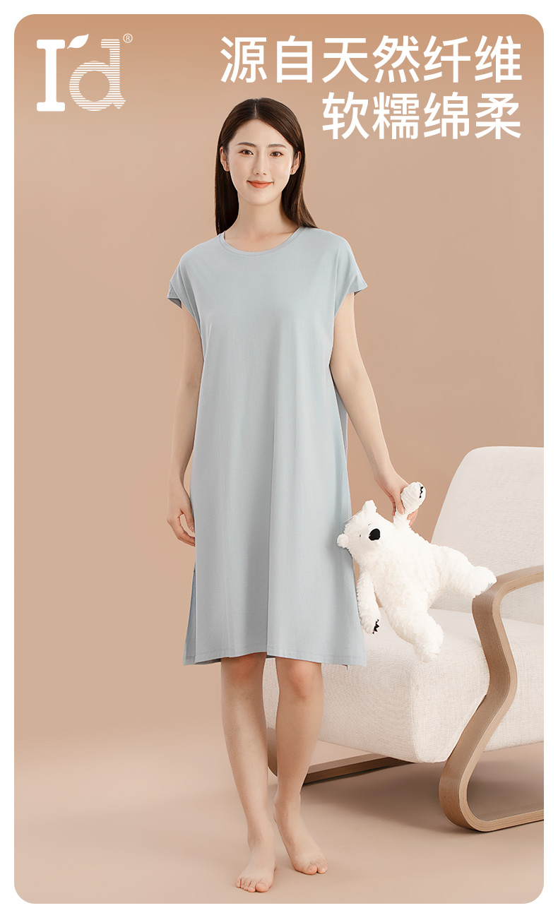 I'd爱帝女士纯棉睡裙植物花卉棉绸手感家居裙