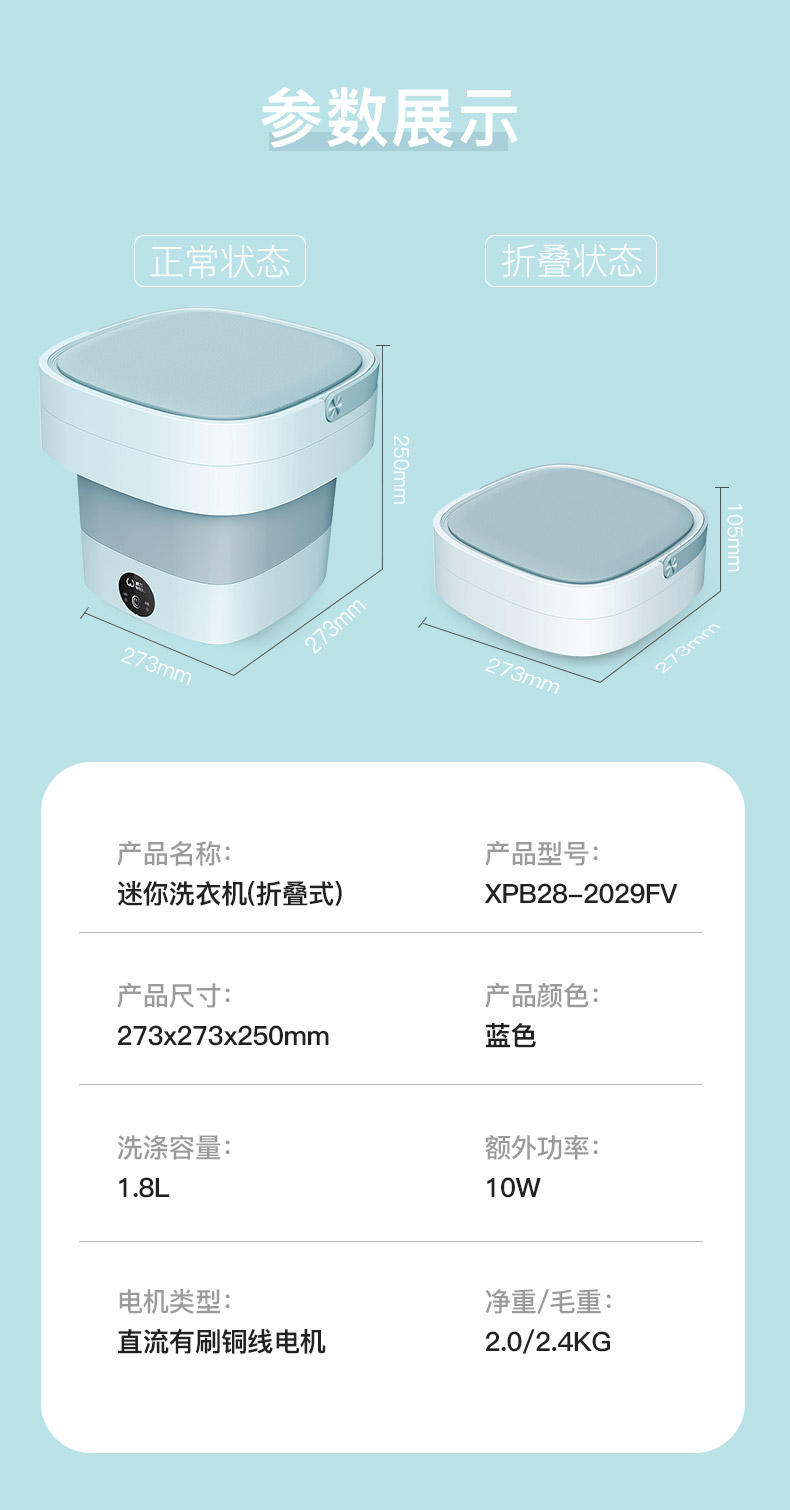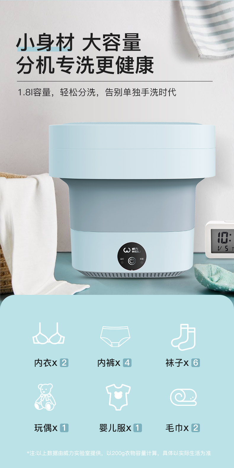 威力小型折叠洗衣机迷你全自动内衣裤婴儿宿舍杀菌专用洗袜子神器不可甩干